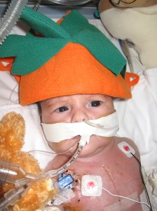 Cool pumpkin hat Rudy! “So, where’s my candy? Who got my candy?” Check out the nurses, Rudy.
