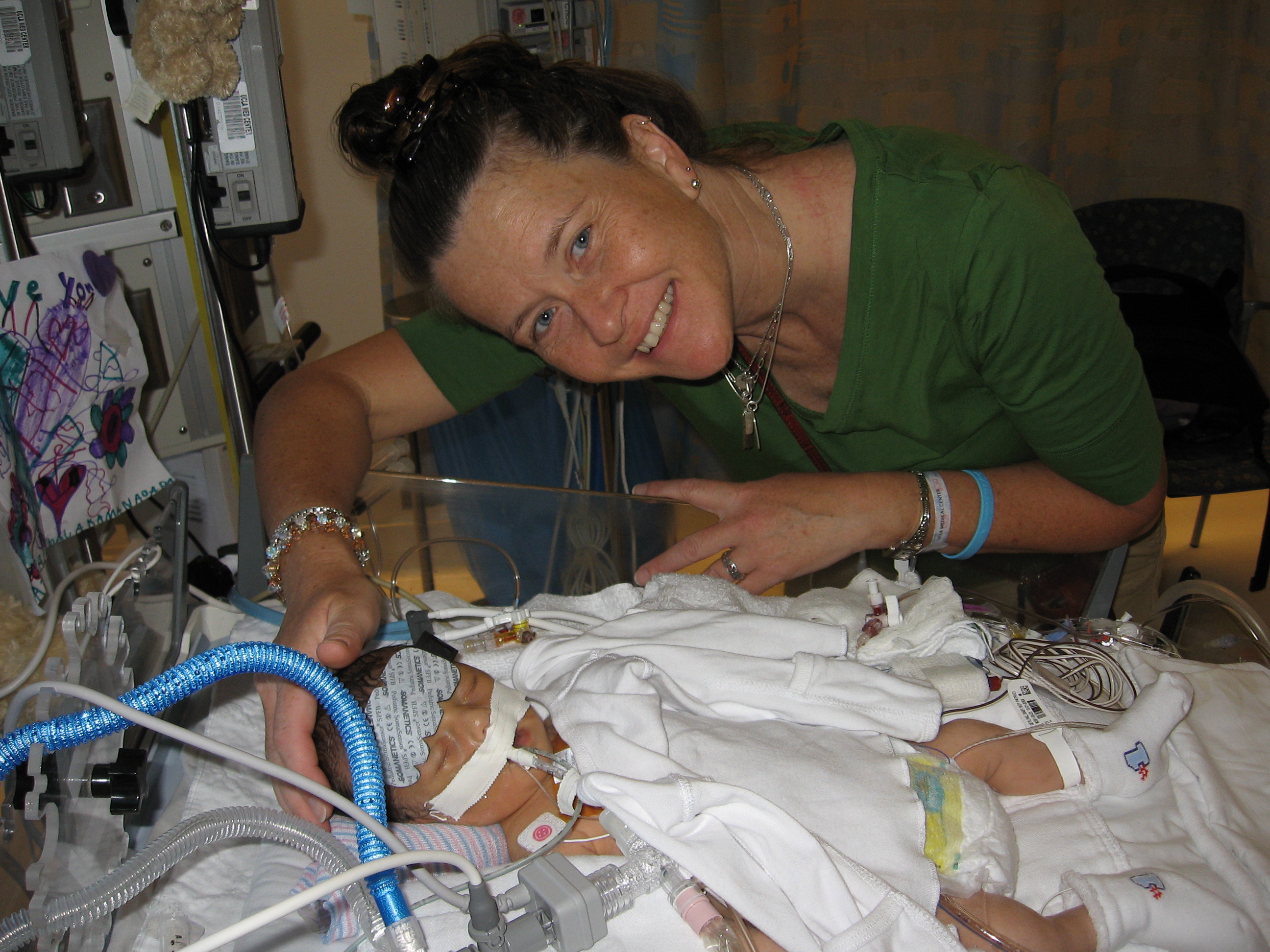 We went out to do some shopping, the most important errand being to get Rudy some socks as his feet sometimes get cold. He’s got them on now and we’re torn as to whether his feet are cuter with them or without them. They backed off the paralytics this afternoon as he’s progressing very nicely and they’d like him to be able to move a little bit as this would prevent fluid from amassing in his tissue. Among the “preparing us for the worst” items yesterday was the likelihood that he would be very puffy until they could get all the fluid to properly drain from his body, but that hasn’t been the case. Especially now that he’s peeing, he looks leaner than he did in the birth pictures. Dr. Reemtsen says that if he keeps progressing at this rate, they’ll close his chest on Thursday for sure as they have left it open to facilitate draining and let swelling go down. Don’t think I mentioned that detail—we learned of it during our first consultation here at UCLA. It’s not as bad as one might think, though Trish hasn’t been curious enough to look. There’s a mesh over the opening and then what looks like yellow plastic wrap over the top—but they assure us it’s a very tough material.