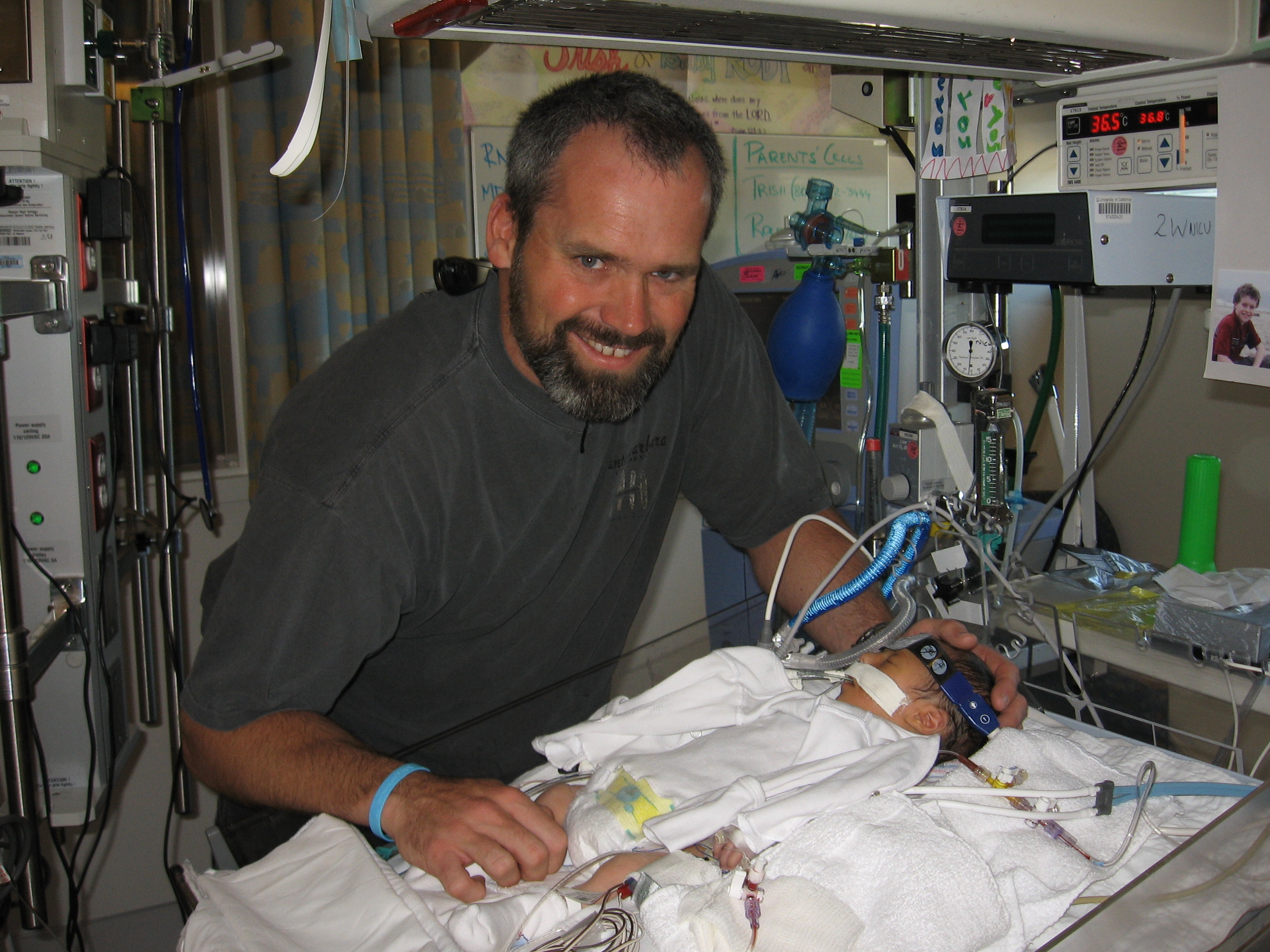 The coolest thing about them reducing the paralytic drug is that he can open his eyes now, so as I sit here looking at him he has them lazily open just a bit. When we come close, hold his forehead and start talking they slowly open up to about halfway. If one looks long enough and close enough, every so often there will be the slightest movement of his mouth and tongue. I wonder if he’s getting tired of having his nutrition by IV and wants to get some of the real stuff. It’s pretty easy to hover over him for hours and just watch, but we also need to let him get his sleep.