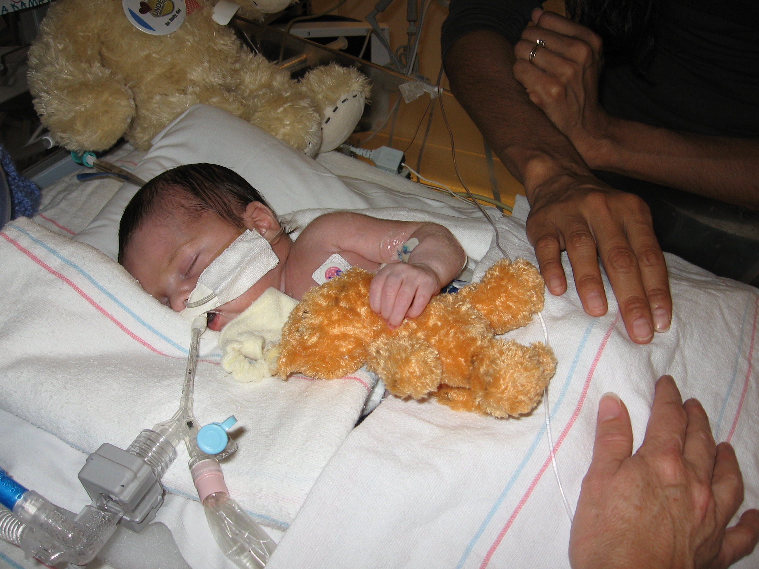 Okay, these pictures really don’t do him justice but I walked into Rudy’s room last night after the evening shift change to find the little guy snuggled so sweetly…Nurse Pam had run her tests, cleaned him all up and got him all settled on his side.  He looked like such a big boy cuddled up to Pooh!  Around 10pm he got turned to the other side and slept very comfortably and soundly all night long!  So sweet!