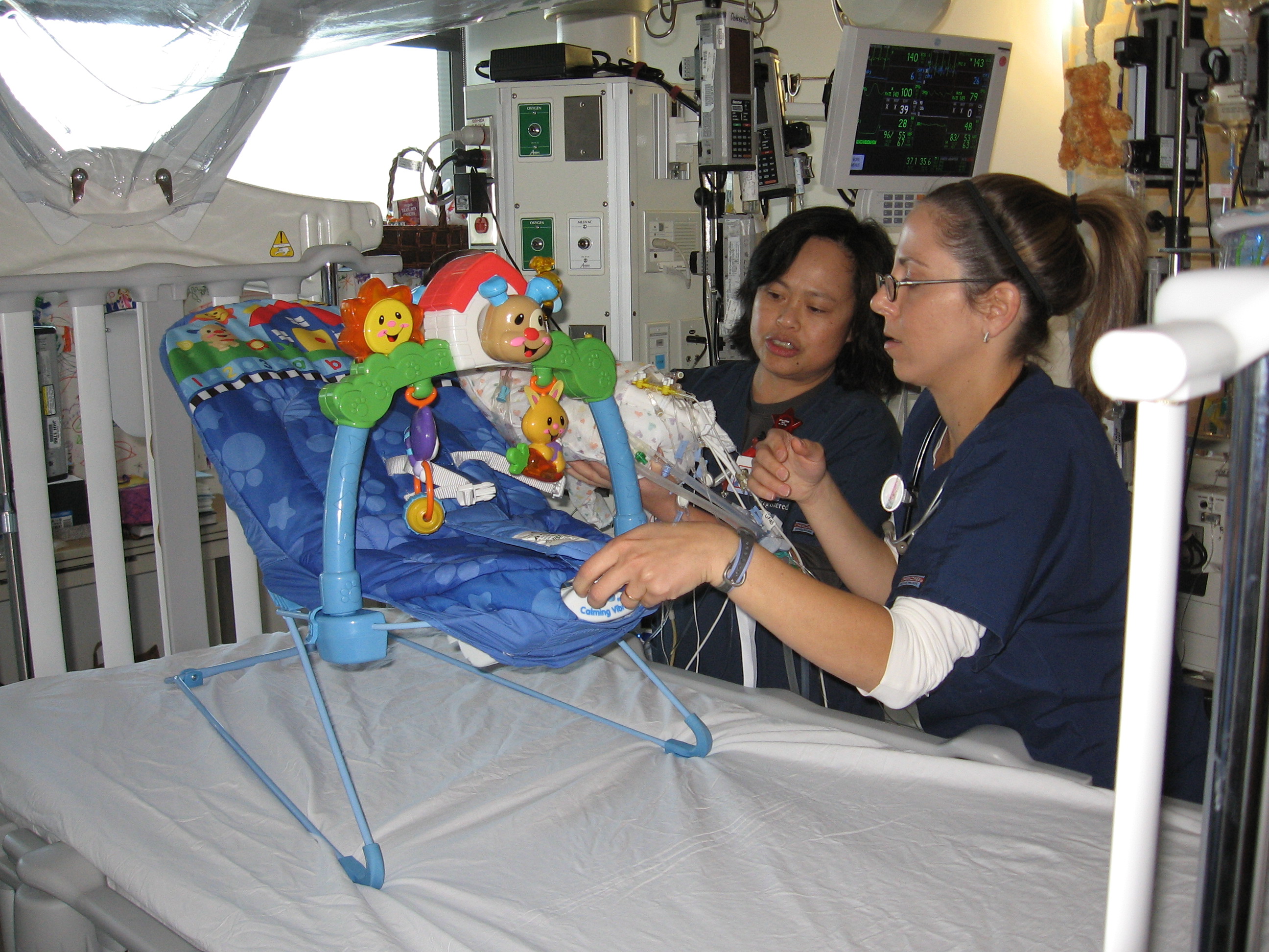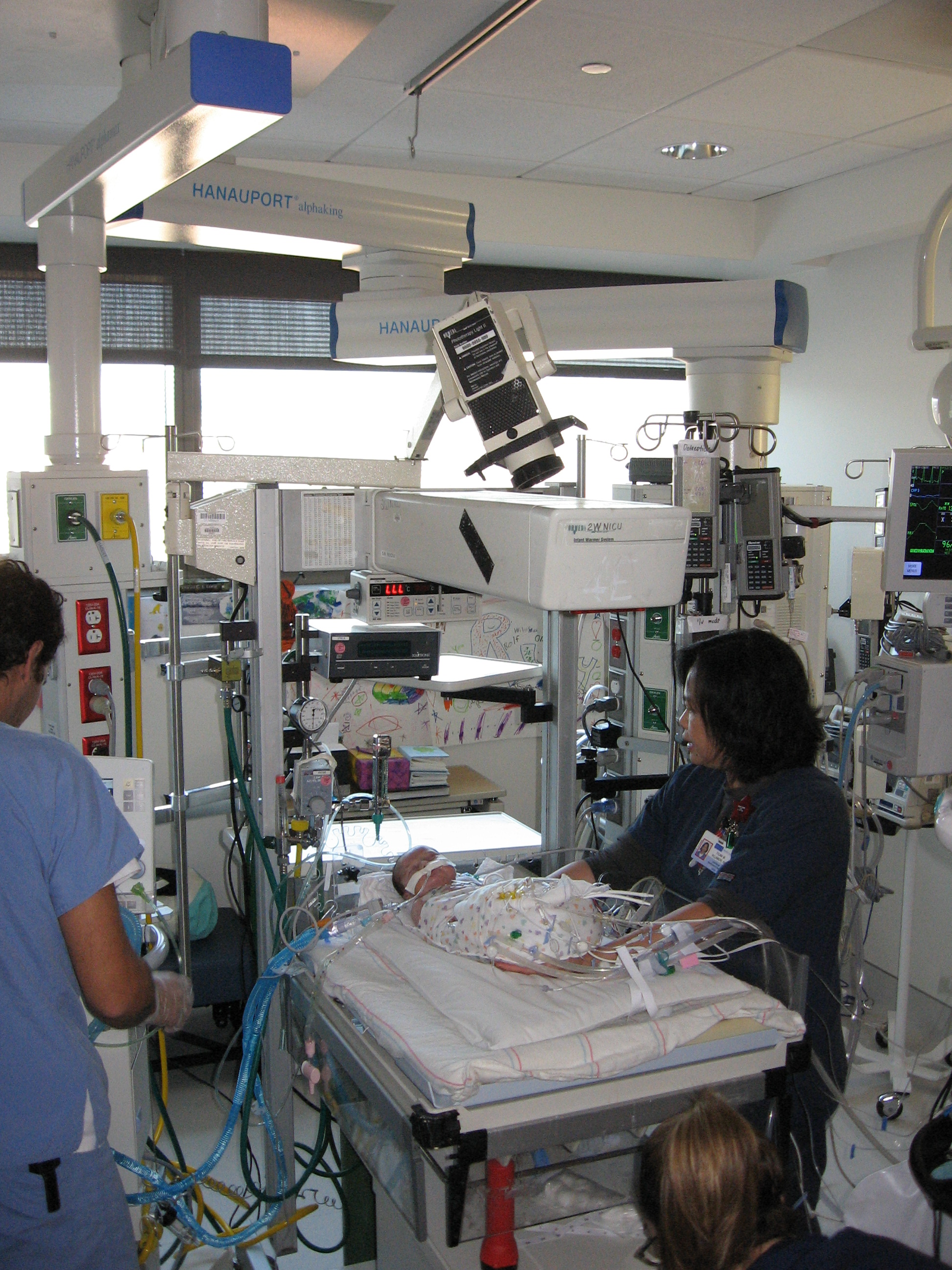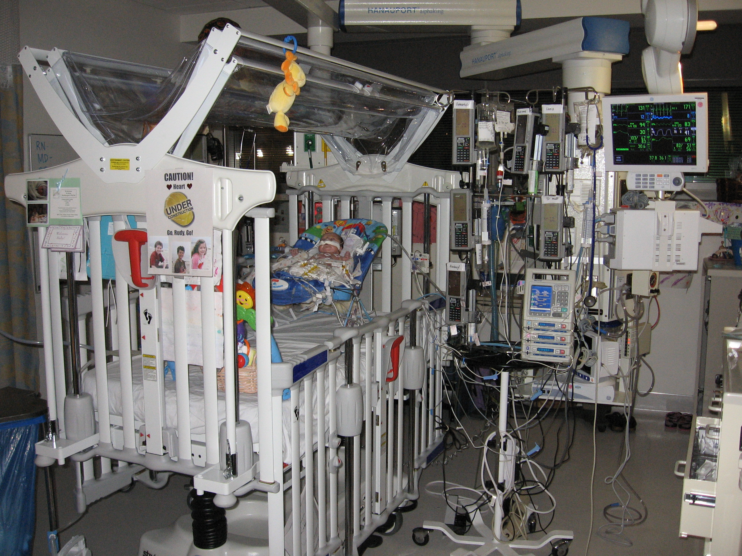 Today was Rudy’s 6-week birthday and he celebrated by successfully completing 2 four-hour sprints. They started him off on a three-hour sprint early this morning and when he reached 3 hours with relative ease, they let him go for another hour! Good job Rudy. 3-month old Logan, our CTICU neighbor two doors down and a fellow Santa Barbara-ite, was extubated today and I guess Rudy’s urge to compete kicked in because he excelled during his sprints and the docs think extubation is worth a try tomorrow!!!!