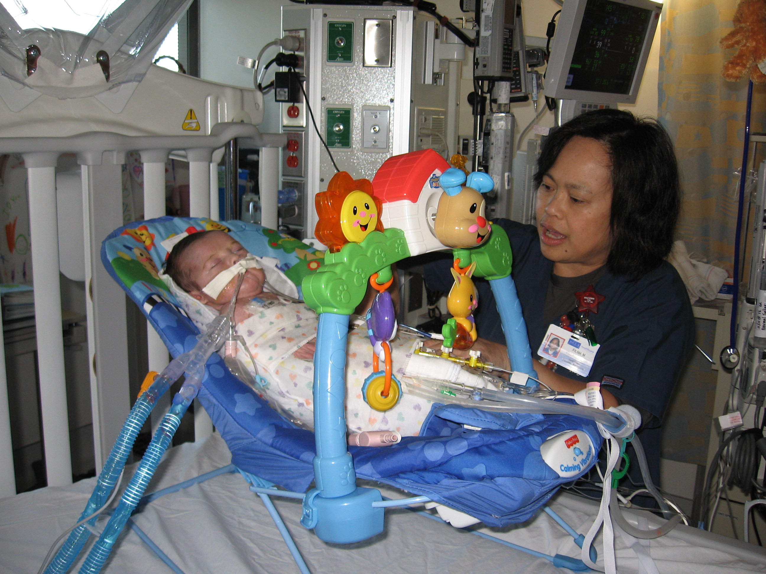 It was quite a production requiring help from Oscar the RT as the ventilator needed to be turned off completely for a minute or two during the transfer. Soon Nurse Filma lifted Rudy up, the bassinet was wheeled out, the crib was wheeled in and Rudy was chillin’ in a new comfy bed. An indication that he is “on the move”.