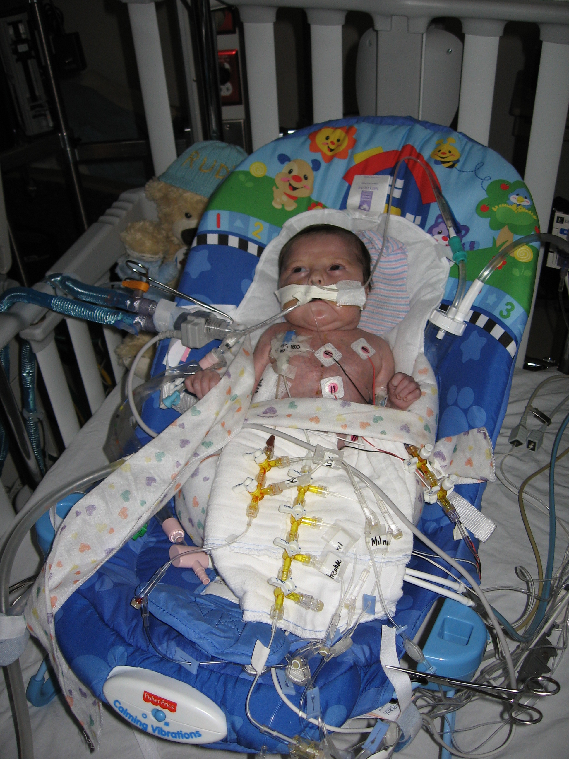 What awesome news. HAPPY BIRTHDAY RUDY! Six weeks old and gettin’ his own crib; too cool. He looks like a big boy and it’s great to watch him grow through your wonderful photos. Praying for his continued positive progress. Love you all, Kelly