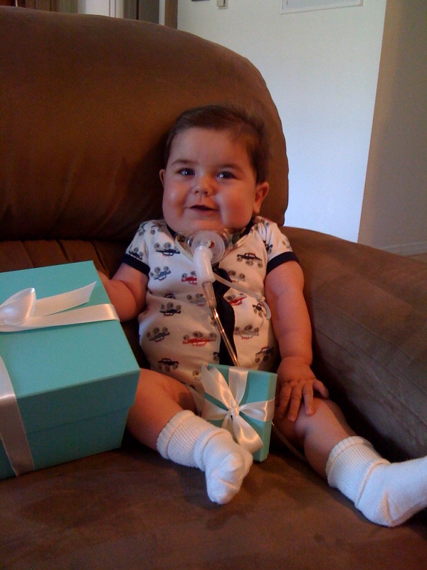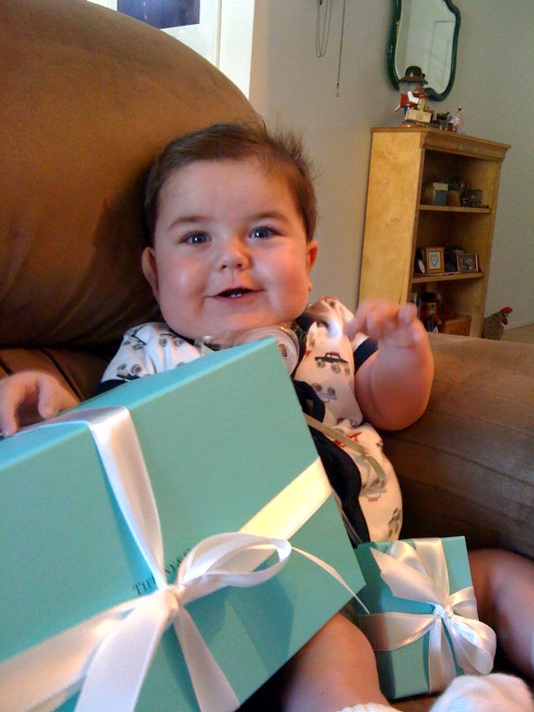 My enthusiasm for shopping has actually waned since moving to the Santa Barbara area. As perfect as our community is on so many levels, shopping venues are limited. Believe it or not, we don’t have a WalMart (yes, it may not be politically correct, but I am an unashamed WalMart shopper) OR a Target! (I KNOW! I can hear the collective gasp from you all!!) Oh, I suppose it’s for the best in the long run but there are those days when I long for that therapeutic trip to Home Goods 🙂 Well, it was one of those days shortly after we brought Rudy home from the hospital when I wandered into our Tiffany & Co. (to window shop…really!) thrilled to finally be “out and about” with Rudy in tow…I must have been pretty excited to show off our precious one as well because I gave sales manager Chelsea a pretty detailed account of Rudy’s journey when she gushed over how cute he was. Ha She was sweet to show interest in Rudy so I gave her the blog address and off I went.