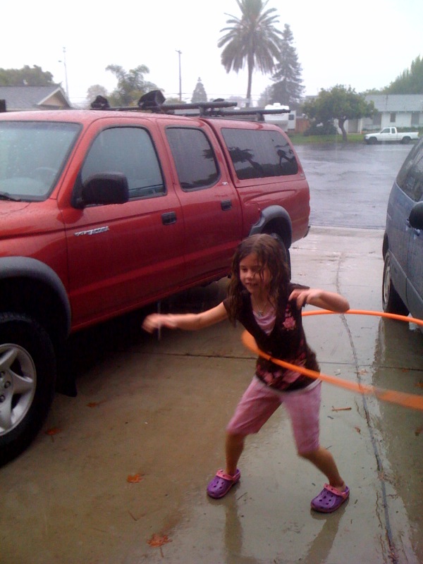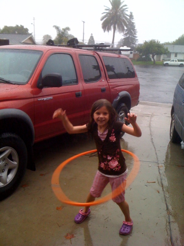 They say it never rains in southern California, so it was a perfect weekend for Livy to go out and play with her hula hoop!