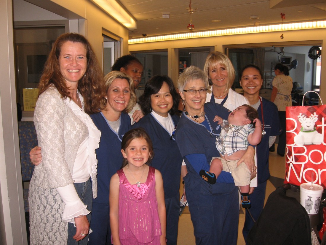 We started off our celebration this week by going back to the hospital.  We had fun sharing Christmas cheer with many of the doctors and nurses that were a part of our holiday last year.