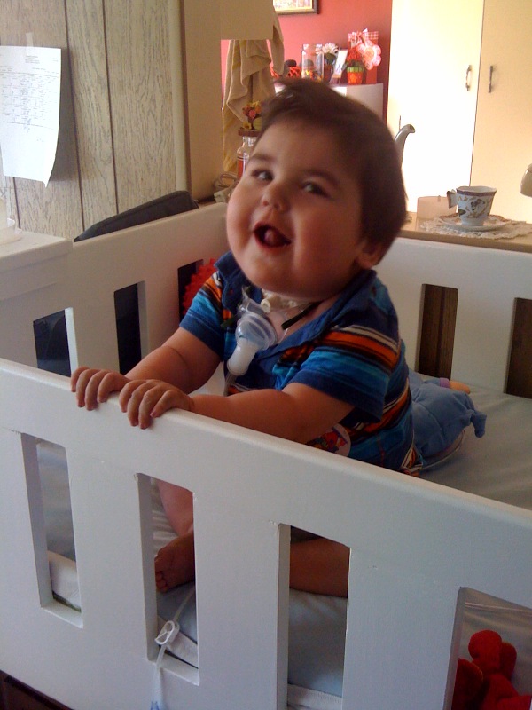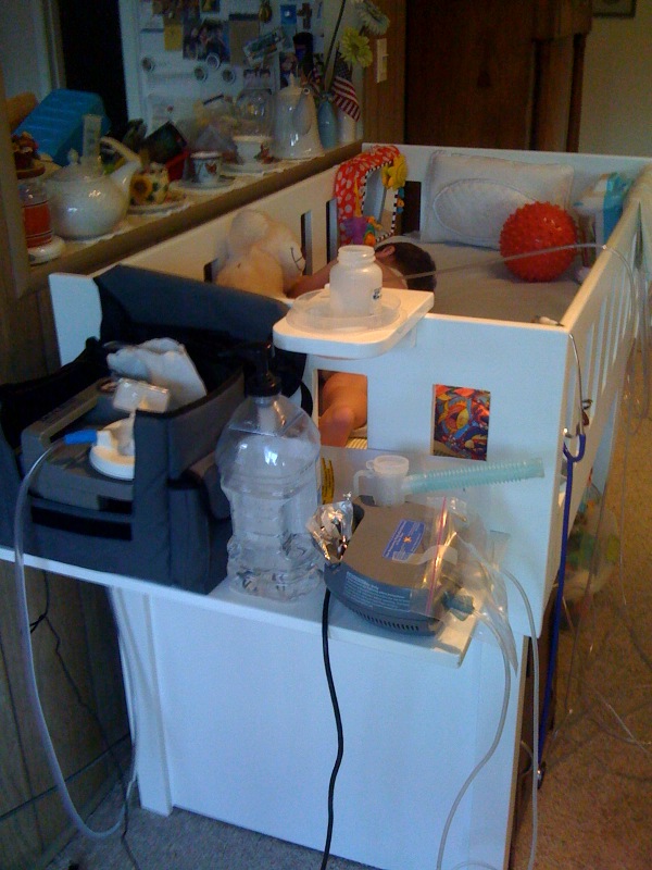 Amazing!!! I love that crib! It looks like Rudy loves it too. I’m also glad to see that I am not the only one with tubes and bedtime looks like a hospital setup. Here’s to one day… our boys will be tube free!!