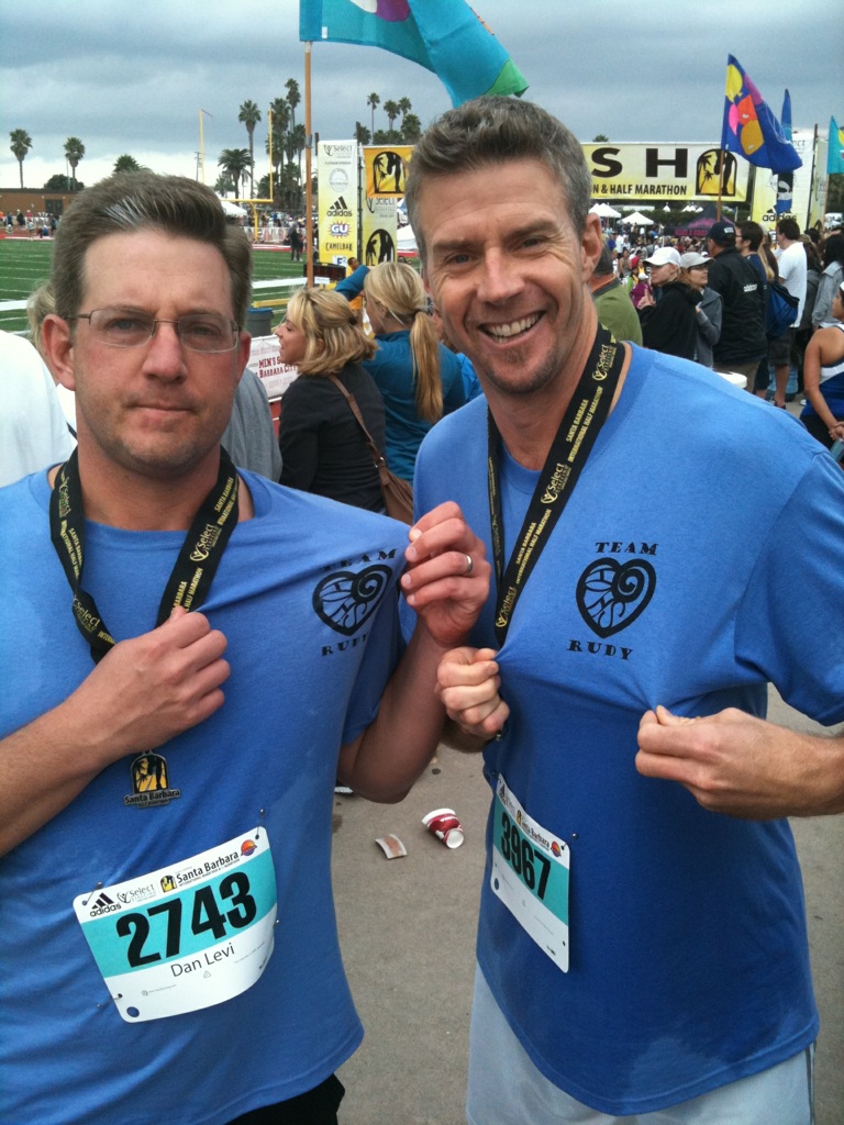 We were blessed by a quick visit from Dr. Dan this weekend who was in town to run the SB 1/2 Marathon! He told us proudly when we were down for Rudy’s cath that he was going to run in Rudy’s honor so we outfitted him with a “Team Rudy” shirt. We threatened to pull our sponsorship if he didn’t finish…thankfully he performed well and from the looks of the picture he texted us below, he had a good time too. Thanks Dr. Dan!