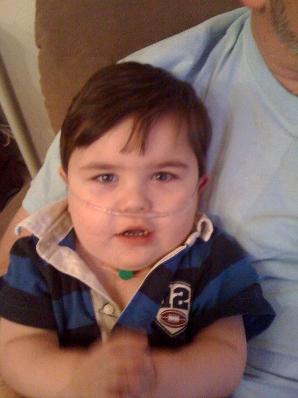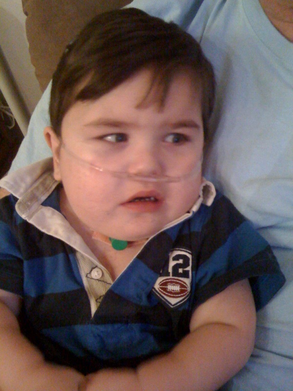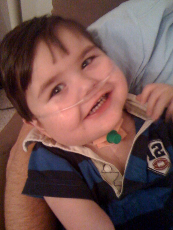 The next step in the process is a sleep study and we are blessed to already have it scheduled at Children’s Hospital LA (UCLA doesn’t have a pediatric sleep lab in which to conduct the study) Sunday November 28 – Monday November 29!! This is sooner than we expected so we’re pleased. In preparation for the sleep study, Dr. Shapiro (UCLA ENT) gave us a cap for Rudy’s trach so he can practice breathing completely through his mouth/nose. Because Rudy has been doing so well with the speaking valve (which allows him to inhale through the trach but forces him to exhale through his mouth) the adjustment to being capped has been a smooth one. What’s not been so smooth, as we predicted, is the switch to the nasal cannula. Boy, he is quick to get his fingers underneath the cannula and pull it off!! When he is capped and, ultimately, when the trach is pulled, he will need to get his oxygen through his nose. A little bittersweet for me because I’ve LOVED having his face free of tubes and tape since he got the trach in February 2009. When he came back from the OR that day, I remember how my heart jumped when I saw his face “tube-free” for the first time since he was born. 🙂