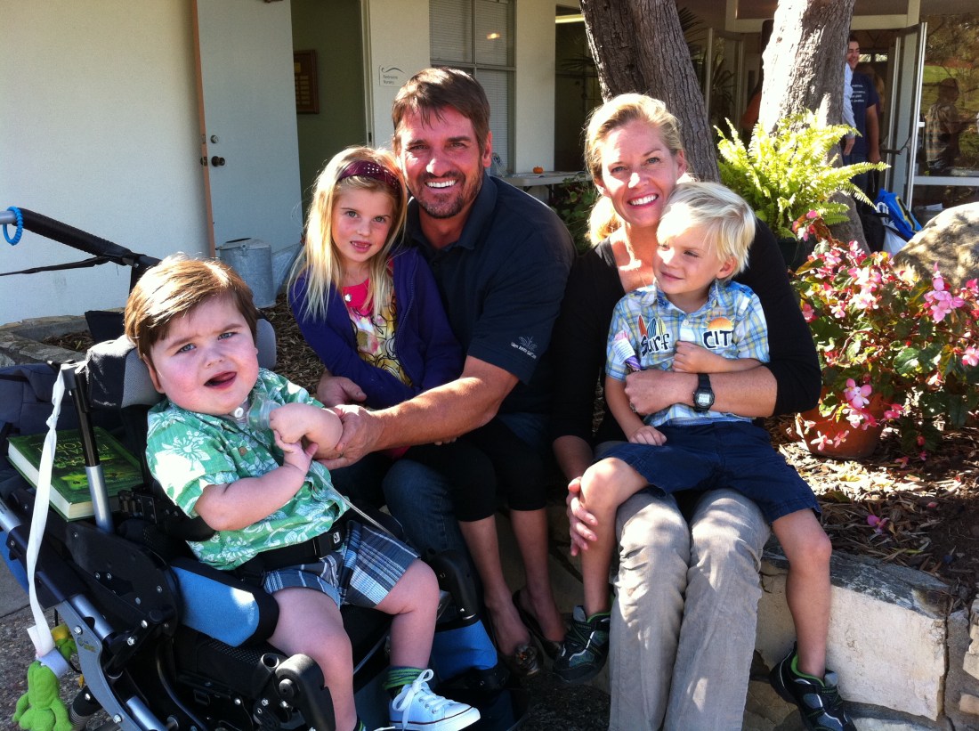 The miracle of God’s presence was also demonstrated about 3 weeks ago when a sweet, young family visited our church for the first time. We bonded quickly with this family and found out as we visited after the service that they lost their 4 year old daughter a year ago November. Joele’s condition was different than Rudy’s but she had similar equipment and so the connection took on even more depth. A week later we shared common stories of frustration with insurance battles and medical supply mishaps when the subject of wheelchairs came up…when we shared about our current battle to get Rudy a comfortable and appropriate wheelchair or medical stroller, Kara’s face lit up and with tears in her eyes she explained how she had been praying for direction about whom to pass on their daughter’s medical stroller and believed Rudy was the one. Long story short, I picked up the device the day before Rudy’s cath to try it out for the weekend and it couldn’t have been a more perfect fit! The minute I put Rudy in it he kicked his feet in excitement and clearly felt like a big boy sitting up high and supported in the middle of whatever’s going on. The generosity of Jeff and Kara in the wake of their own deep loss is profoundly moving to us…ah, God’s grace!