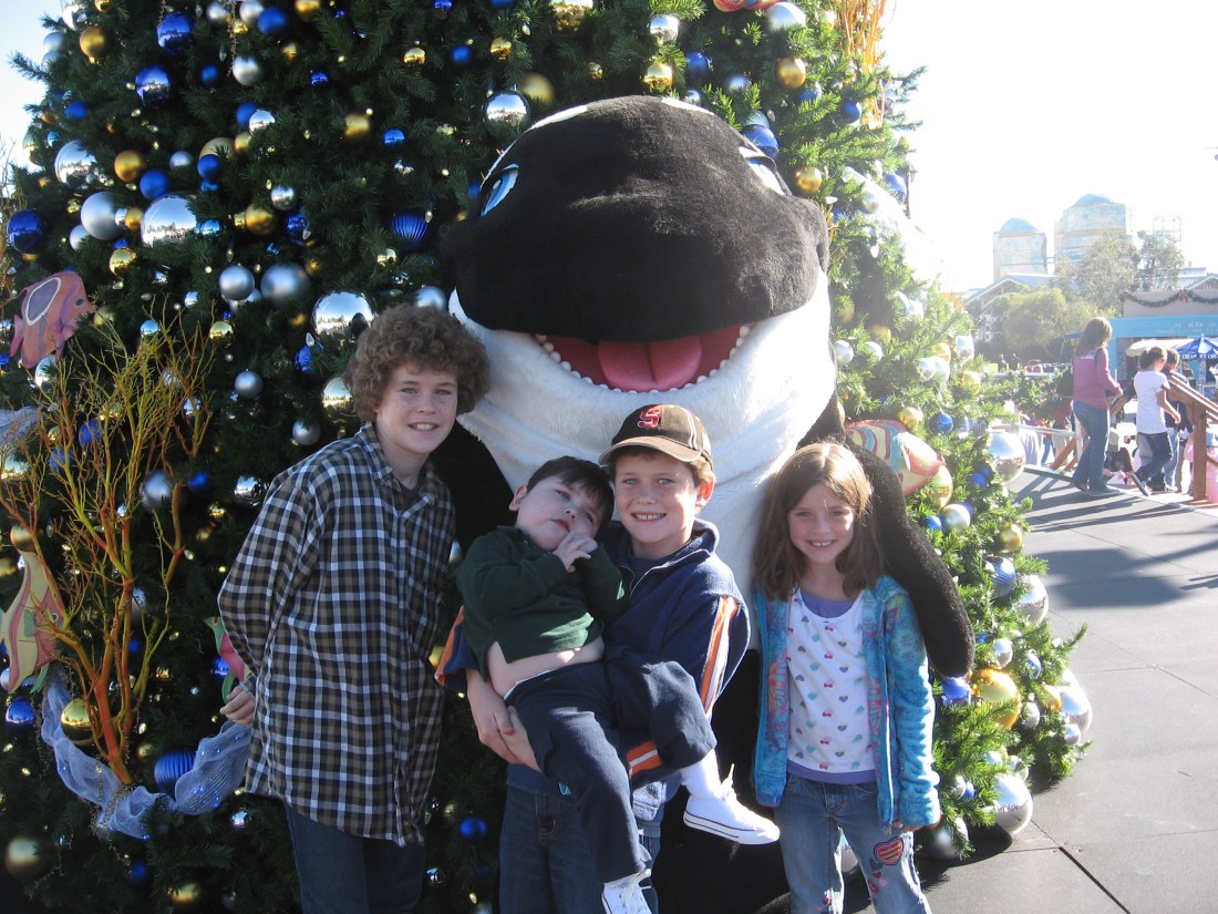 Shortly after Rudy’s heart cath, when it was determined we would not be heading into heart surgery, we decided a family trip was in order! It just so happened that Max and Olivia won tickets to Sea World for the whole family at the Heart Walk and a school fundraiser so we were already primed and eager for a visit to San Diego. We were blessed to spend Thanksgiving day with dear old friends from my years in San Diego who also happen to be Rudy’s godparents and then we spent the day at Sea World on Friday – a really fun way to usher in the holiday season. It was a huge effort for such a quick trip but it was refreshing and restorative on many levels.