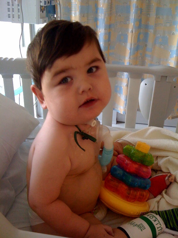 Our poor boy is not enjoying this visit to the PICU. He came out of anesthesia okay at first but he was pretty upset and battled a high heart rate and low sats most of the afternoon. Even a visit from Dr. Rick and RT Oscar didn’t cheer him up but Dr. Marie just ordered the “good stuff” so we should have a sleeping boy pretty soon…if so, I’ll run out real quick and get a bite to eat and then, hopefully, we’ll both settle down for some good rest tonight.