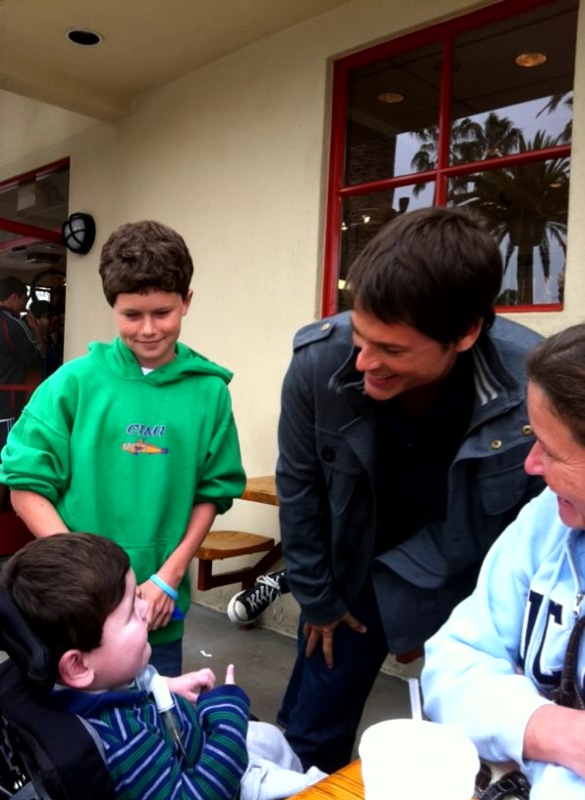 The second occured today when we had a Santa Barbara moment and just happened to run into Rob Lowe at one of our favorite local taquerias. Although a ton of celebrities live in our community, we don’t generally frequent the same establishments so this sighting was a big deal. Being a “brat pack” fan in my youth, I was pretty giddy and wanted to get a picture of Rob with Rudy but was too shy to ask. Before I knew it, Max walked right up to him as he and his party left the restaurant, said “hi”, shook his hand and asked if he would come take a picture with his baby brother. No inhibitions…so confident! Rob Lowe couldn’t have been sweeter…he came right over, got down on Rudy’s level, gave us time for just the right shot and took interest in the big sibs too. Rob, if you google yourself and happen upon this post, THANK YOU for being so kind to our little superstar!! And thank you Max for going for it and making things happen!