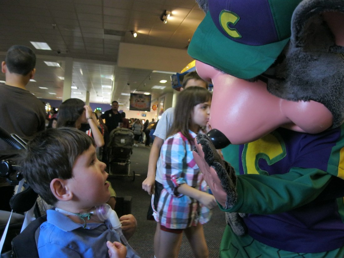 Rudy even braved a couple of rides…I brought a tub of Clorox disinfectant wipes and got a handful of cross-eyed stares from onlookers as I tried to nonchalantly wipe down every inch of surface within Rudy’s reach.  My efforts may be proving futile as Rudy came down with a cough, sneezes and a runny nose yesterday.  Oh well, I think Rudy would agree it’s a small price to pay for the fun of new experiences like this ride with Wilson…