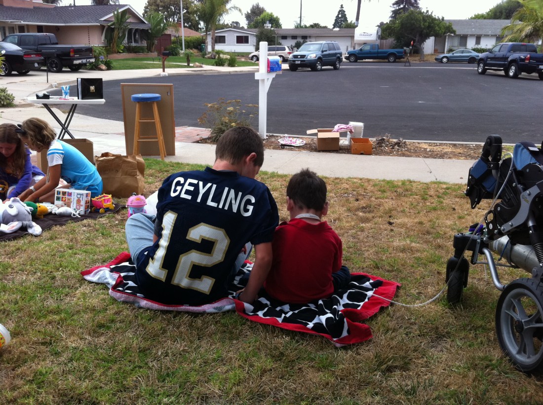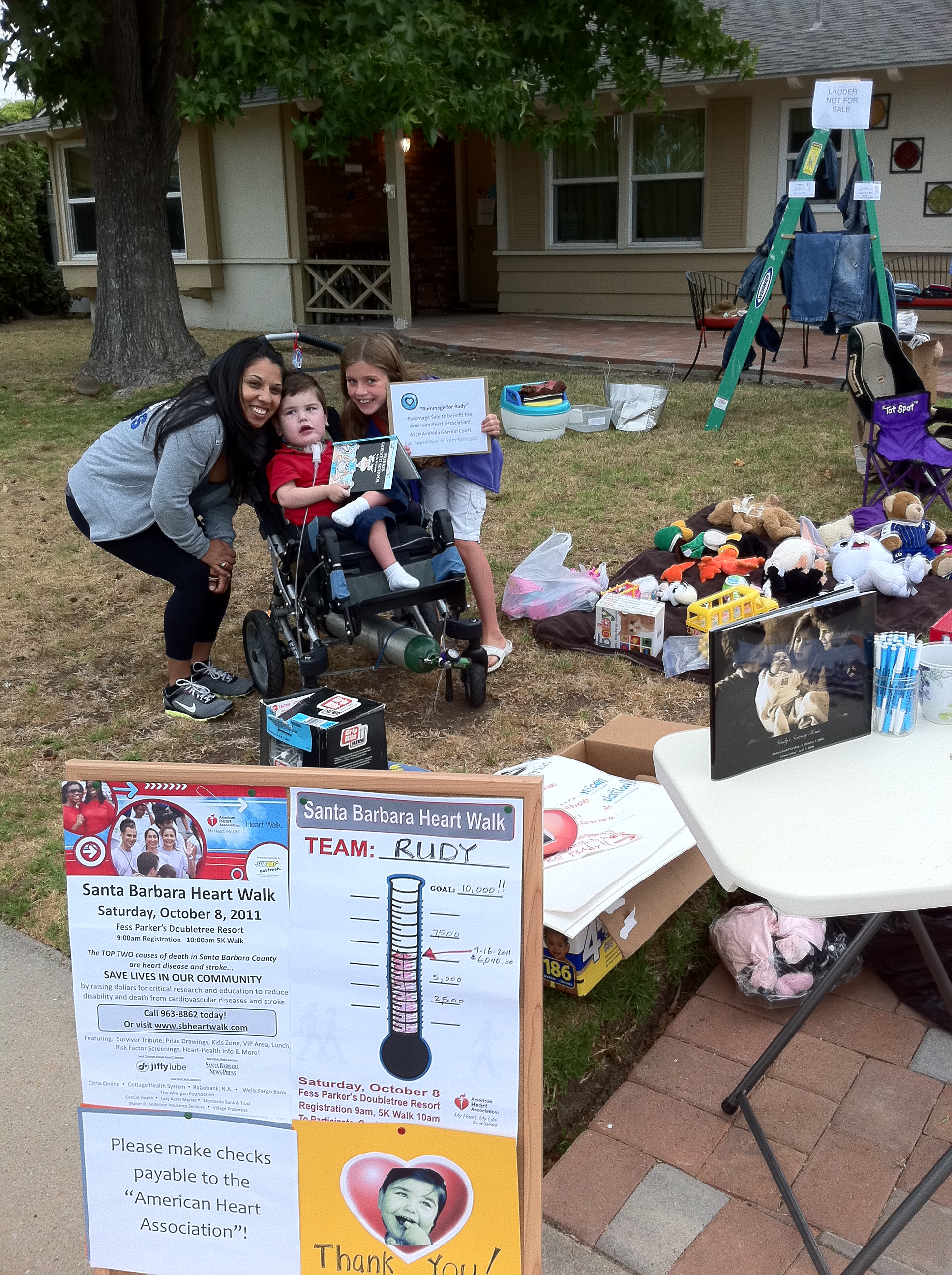 Our Rummage Sale was a grand success on Saturday…we sold alot of stuff, connected with a bunch of people in the neighborhood, spread the word about the Heart Walk and raised an additional $290.00!  🙂  Rudy was stationed in the front yard keeping an eye on all the activity and looking cute…