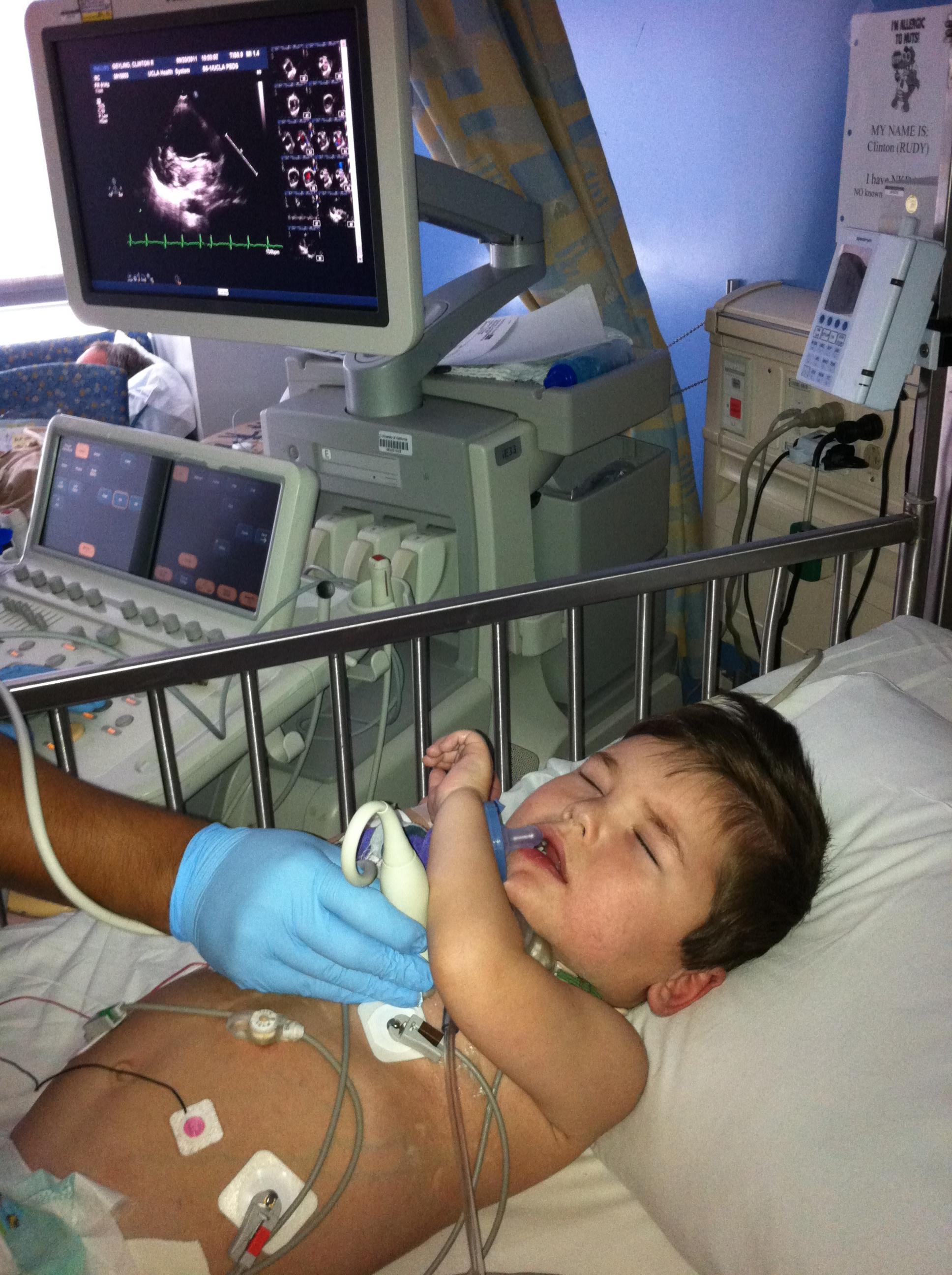 It is astonishing to see him fall asleep during this non-invasive echo procedure. I think it is his way of “escaping” the rigors of the hospital stay. He sucks his “passie” to put himself to sleep so he doesn’t have to face it at all. He’s definitely an incredible little boy and such a blessing to you all….. : )