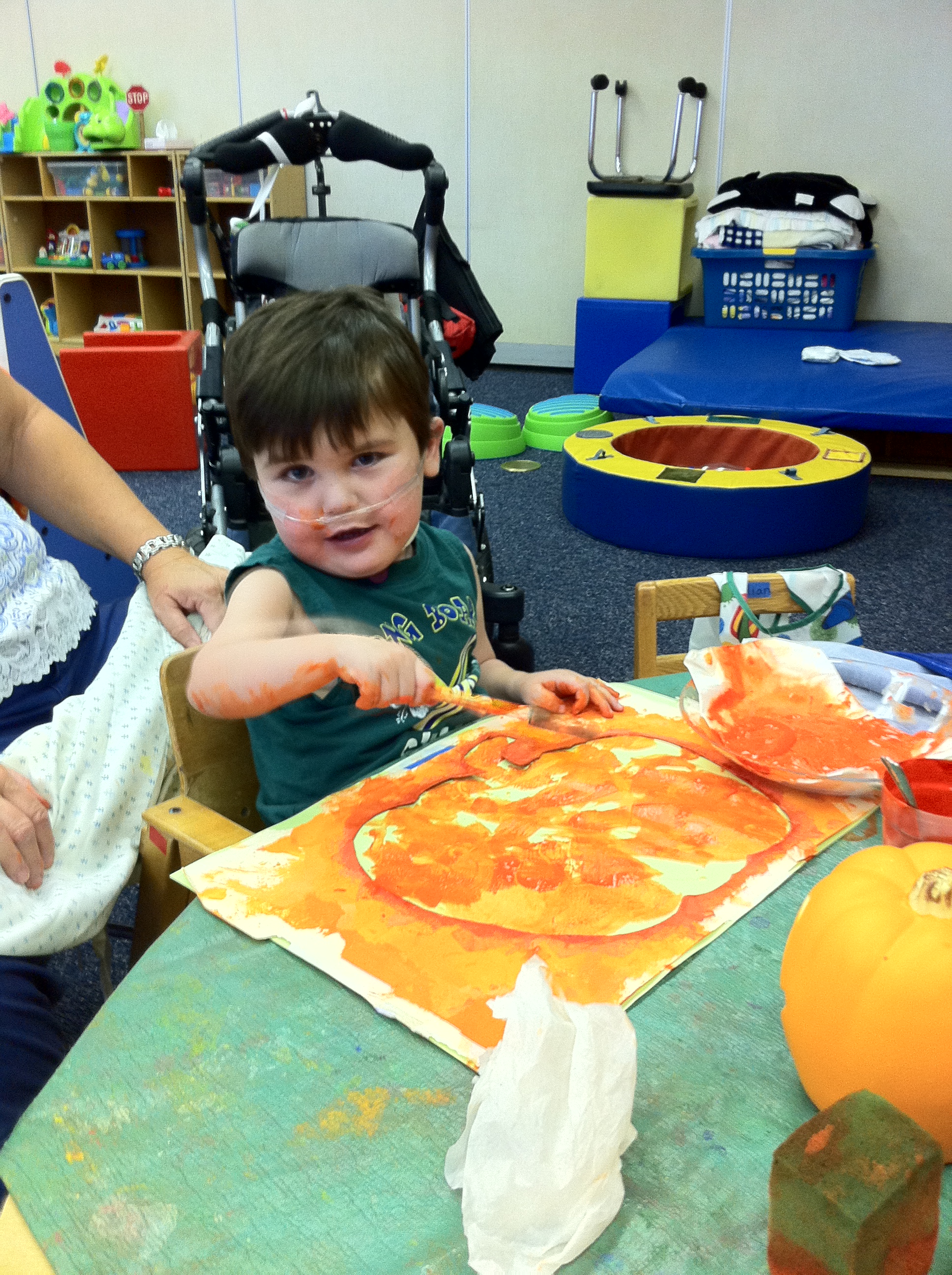 Rudy’s second day of school went well.  He enjoyed several of the activities at school so much that he threw a couple little tantrums when teacher Christy started to wrap them up and move on to the next.  That’s new behavior for our little sweet and happy boy.