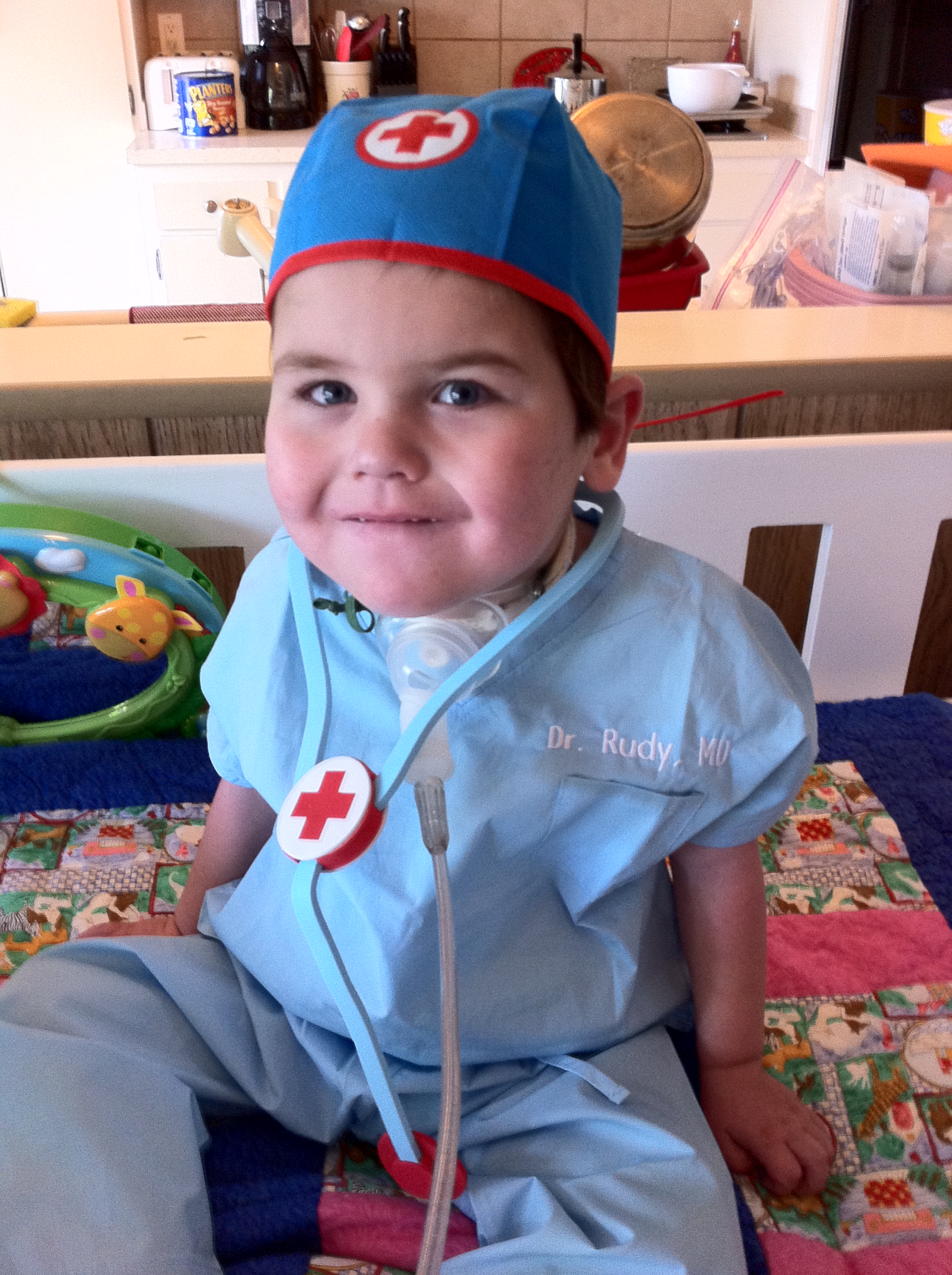 We’ve been on a pretty happy run of late–from the good news at the heart cath, to Rudy’s birthday, to the Heart Walk, and now the first week of school.  Part of the fun is that we get to share this journey with so many people near and far thanks to this blog.  Some of the most special people we get to share it with are families on similar journeys who are able to see the beauty and cause for celebration even in the midst of challenging circumstances.  So we were especially tickled by a super-fun internet game of Udderball with Moriah (glad you’re back home!) and, as promised, a special birthday present from Gwendolyn.  We aren’t planning any trips back to UCLA anytime soon, but when we do Rudy will be ready to weigh in on group rounds.