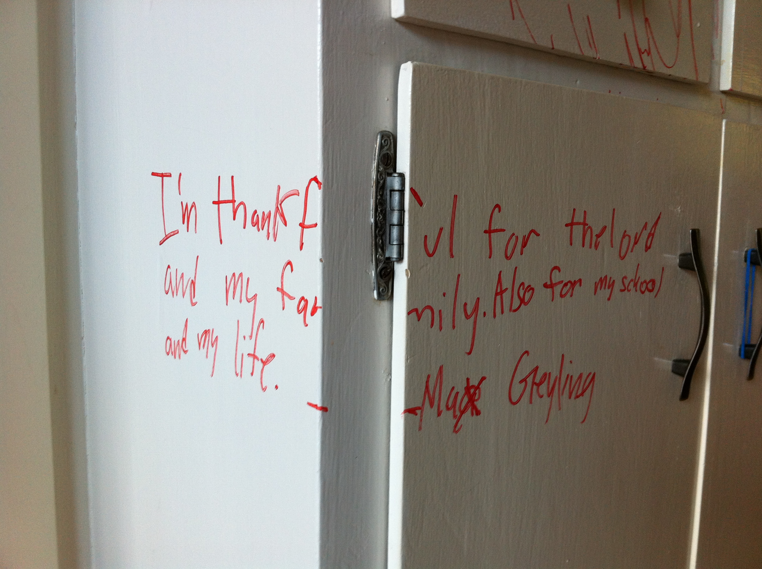 In keeping with the Thanksgiving theme, the kids added things they are thankful for…