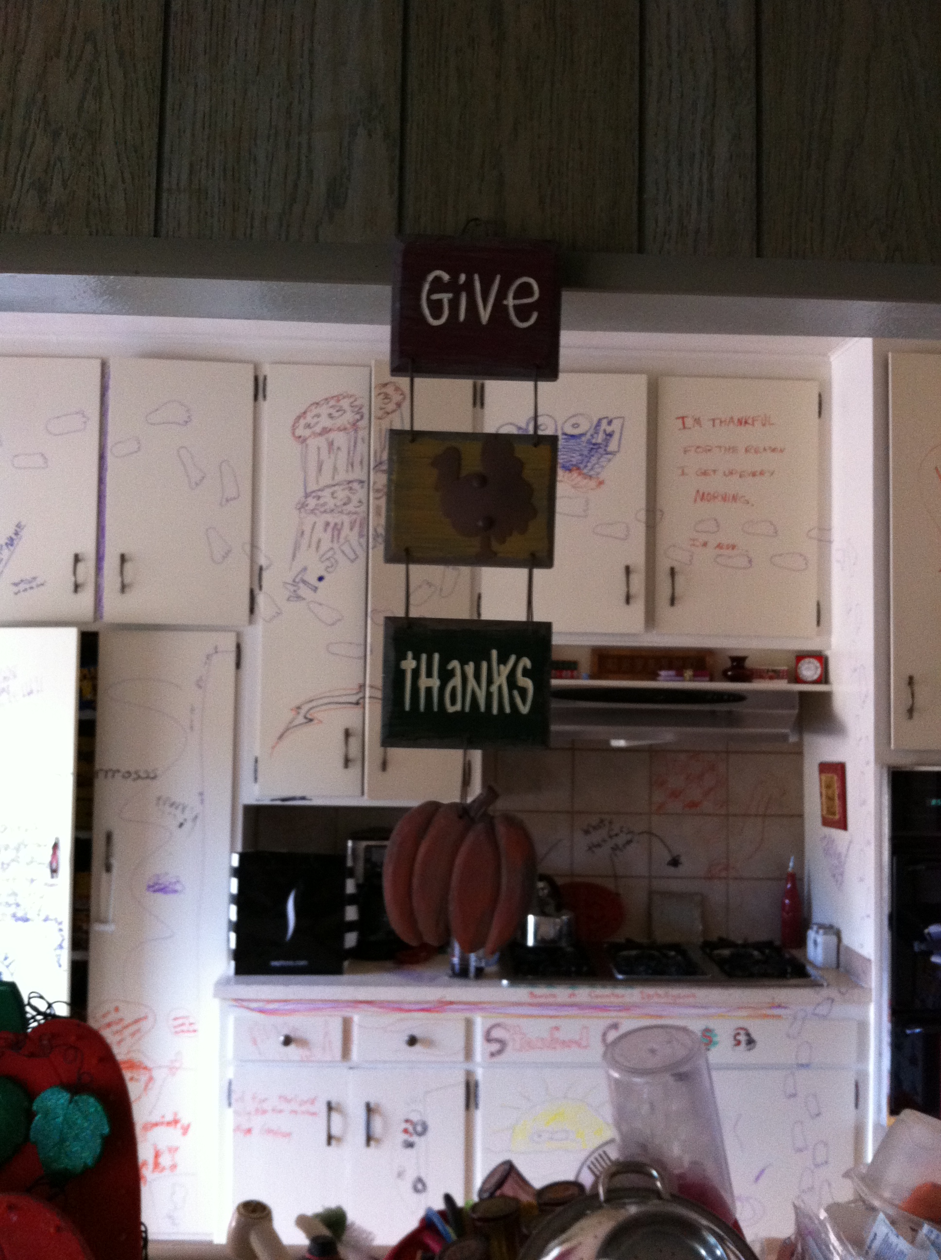 As if life isn’t chaotic enough, we’ve decided to do the long-awaited kitchen remodel we’ve put off for the past 3 years. A kitchen remodel during the holidays isn’t the most practical choice on many levels but there sure are a lot of great appliance deals and added incentives this time of year so maybe the headache of a Christmas without a working kitchen will work to our advantage! Ha Ha In preparation for the Thanksgiving demolition this weekend, the kids were unleashed in the kitchen with Sharpies…