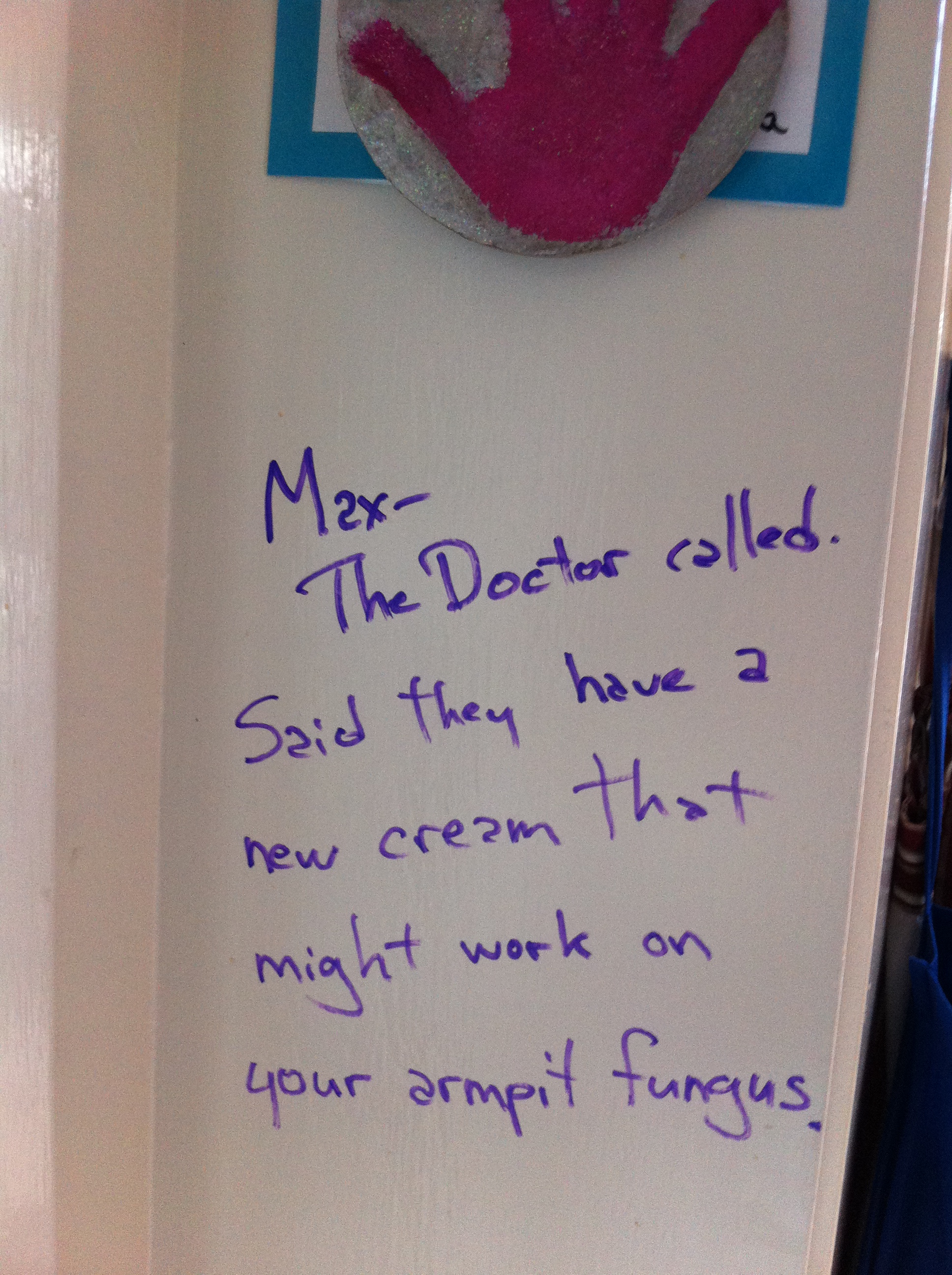 I so want to write all over the kitchen! That is awesome! You guys are so fun. And nutty! No kitchen, for how long!?