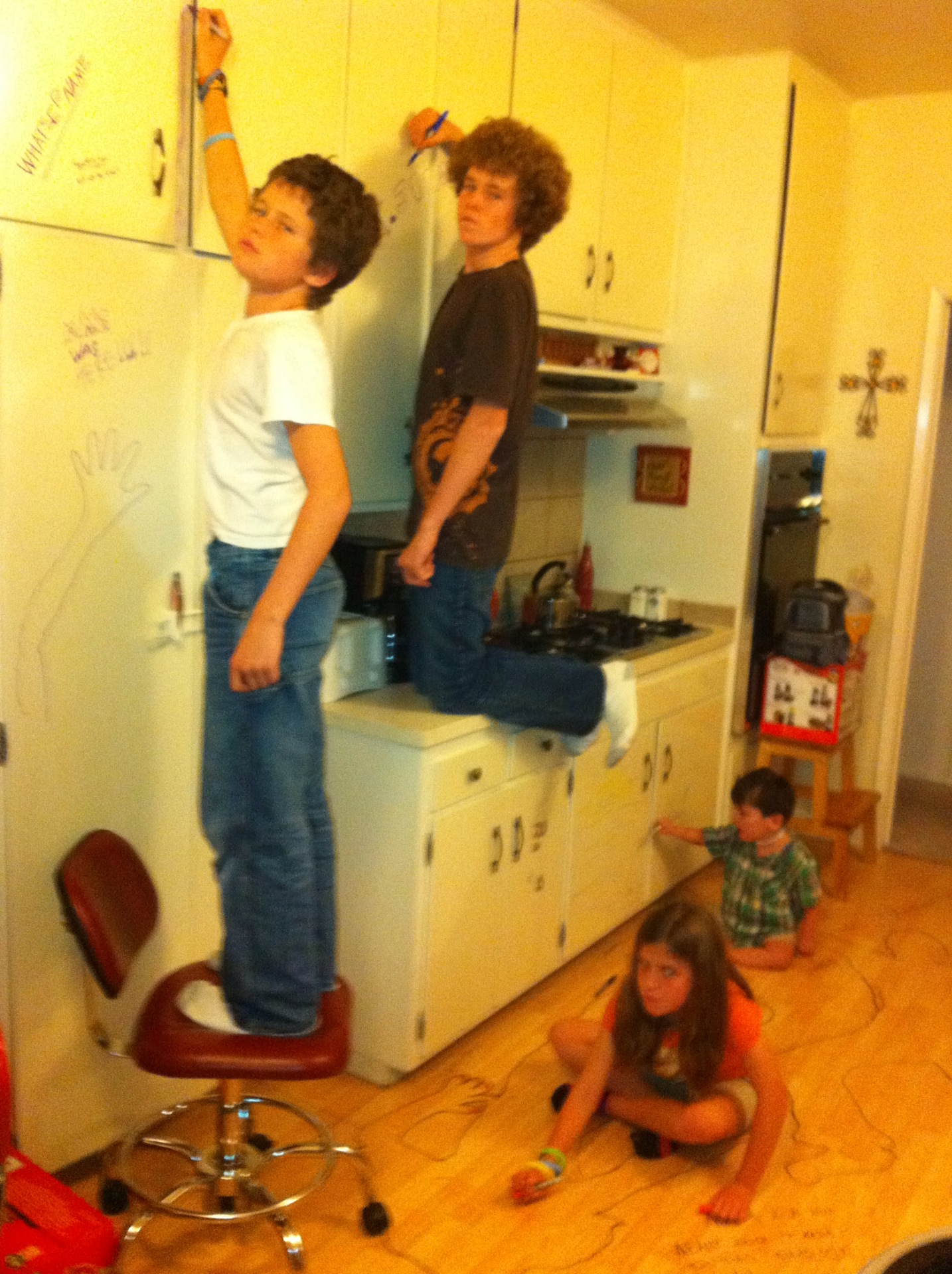 Our kids went nuts with sharpies too when we redid the kitchen. It’s also a great idea before putting in new flooring to write your favorite bible versus on the cement. Then you will literally be a family that is standing on the Word of God. BTW, all your kids are darling ;0)