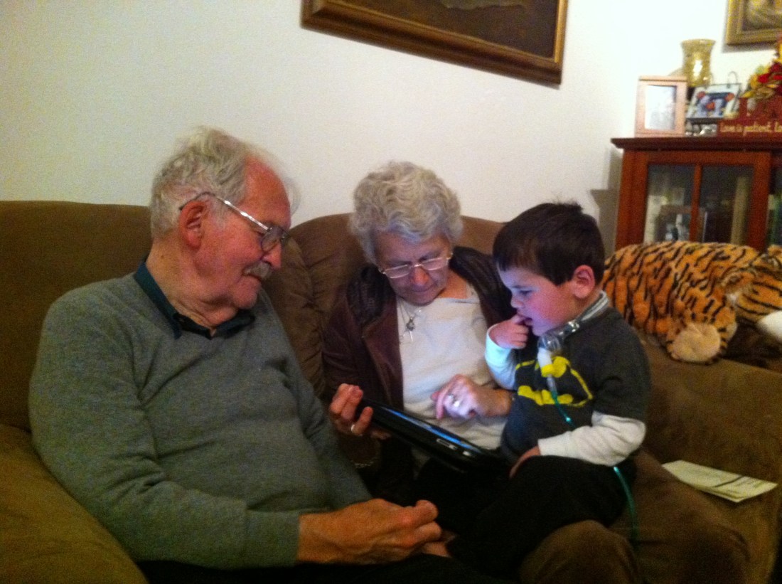 Got the call from UCLA late this afternoon that we’re the first case in the lab tomorrow morning. Procedure time 8:30; admit time 6:30 means we leave home at 4:30. Rudy seems like he knows something’s up as he was really cranky this evening and has just finally just starting to doze off here at 10 pm. About the only thing that settled him down was demonstrating the iPad to Opa.