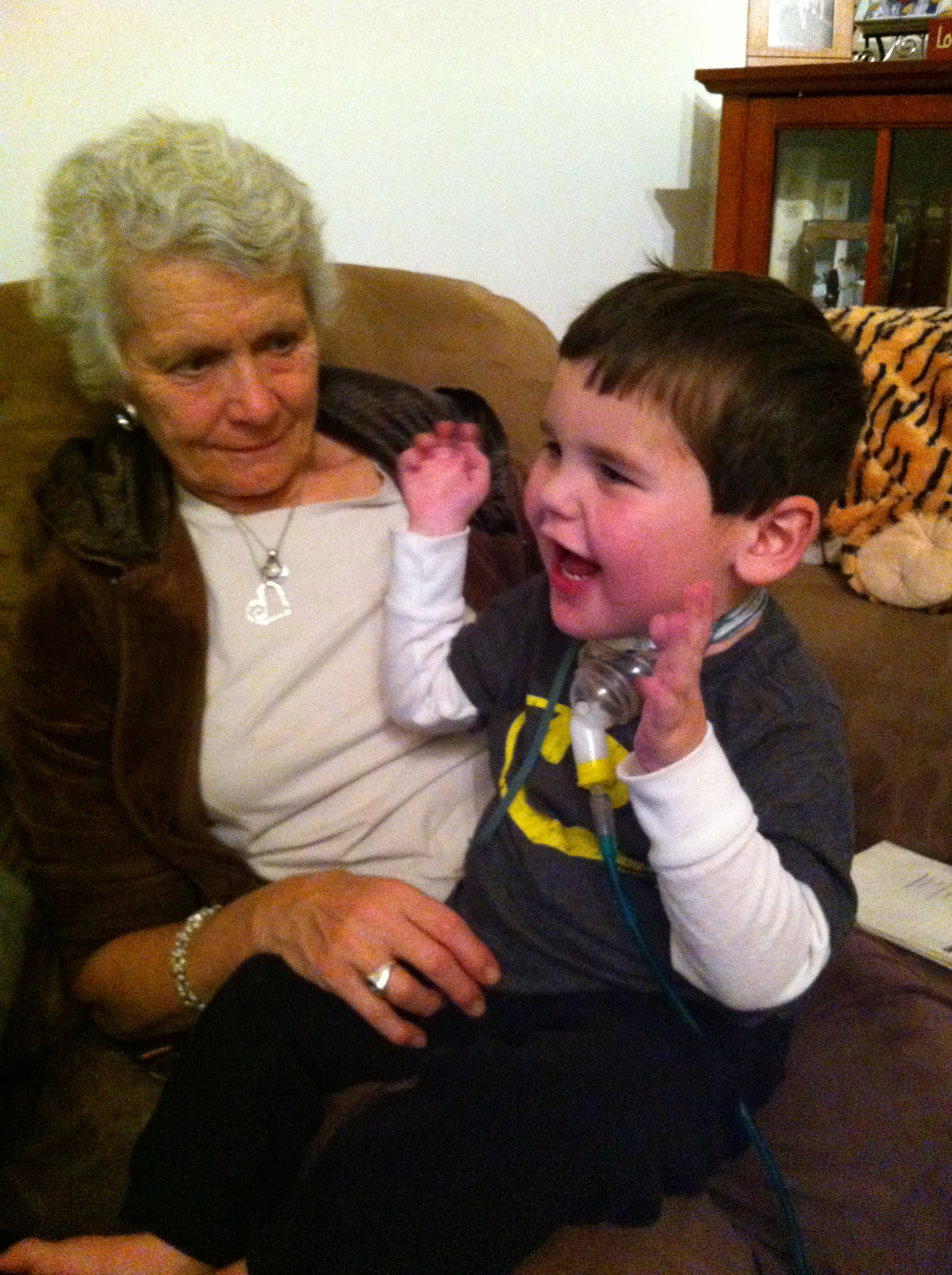 As Rolf mentioned briefly yesterday, the cath results are favorable. Rudy’s lung function is, indeed, improving. He’s still not a Glenn candidate but, like last time, he is heading in the right direction! One report that surprises us in particular is that the O2 sats coming out of his right lung are measuring in the 90s! To put things in context…when Rudy was diagnosed with his chronic lung disease and put on a continuous supply of oxygen in June of 09, his O2 sats coming out of both lungs were in the low 70s (meaning that the blood coming out of the lungs was only 70% oxygenated when it should have been 100%). Over the past two years, we have seen gradual improvement in the left side to where it reached the upper 90s last fall but the right lung was still measuring in the 70s…this made sense because the right lung saw the most damage during Rudy’s battle with the chylous fluid in his chest cavity after the Norwood surgery in 2008. Well, being patient has paid off as it looks like the O2 sats coming out of both lungs are near normal. This is thrilling news and an indication that the lungs are slowly healing. Dr. Dan even questioned why we still have him on oxygen!! In follow-up conversations, no one is willing to dc the supplemental oxygen at this point but it’s definitely something to keep an eye on!