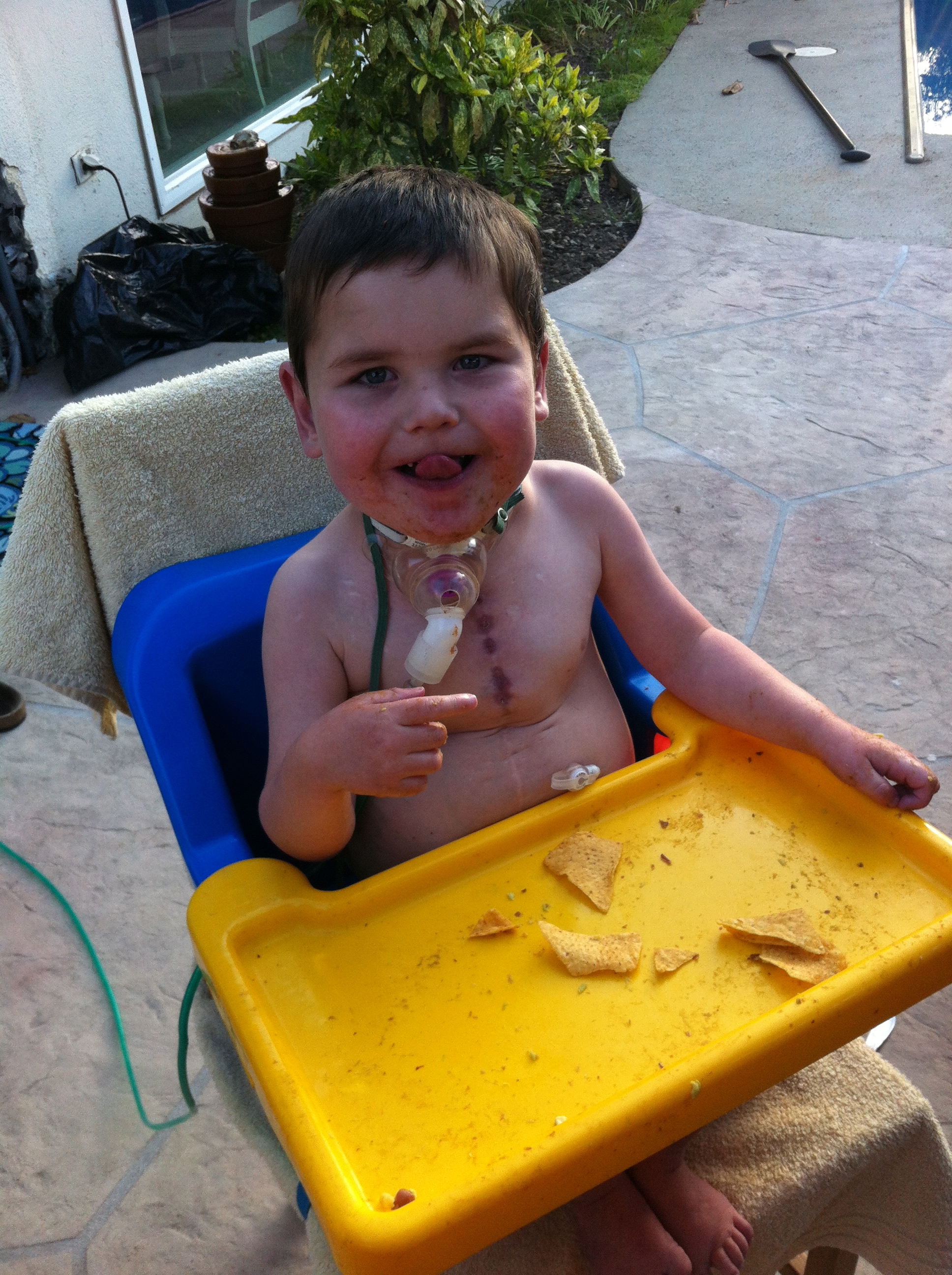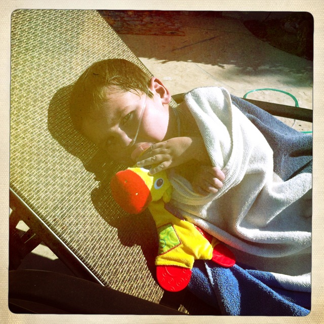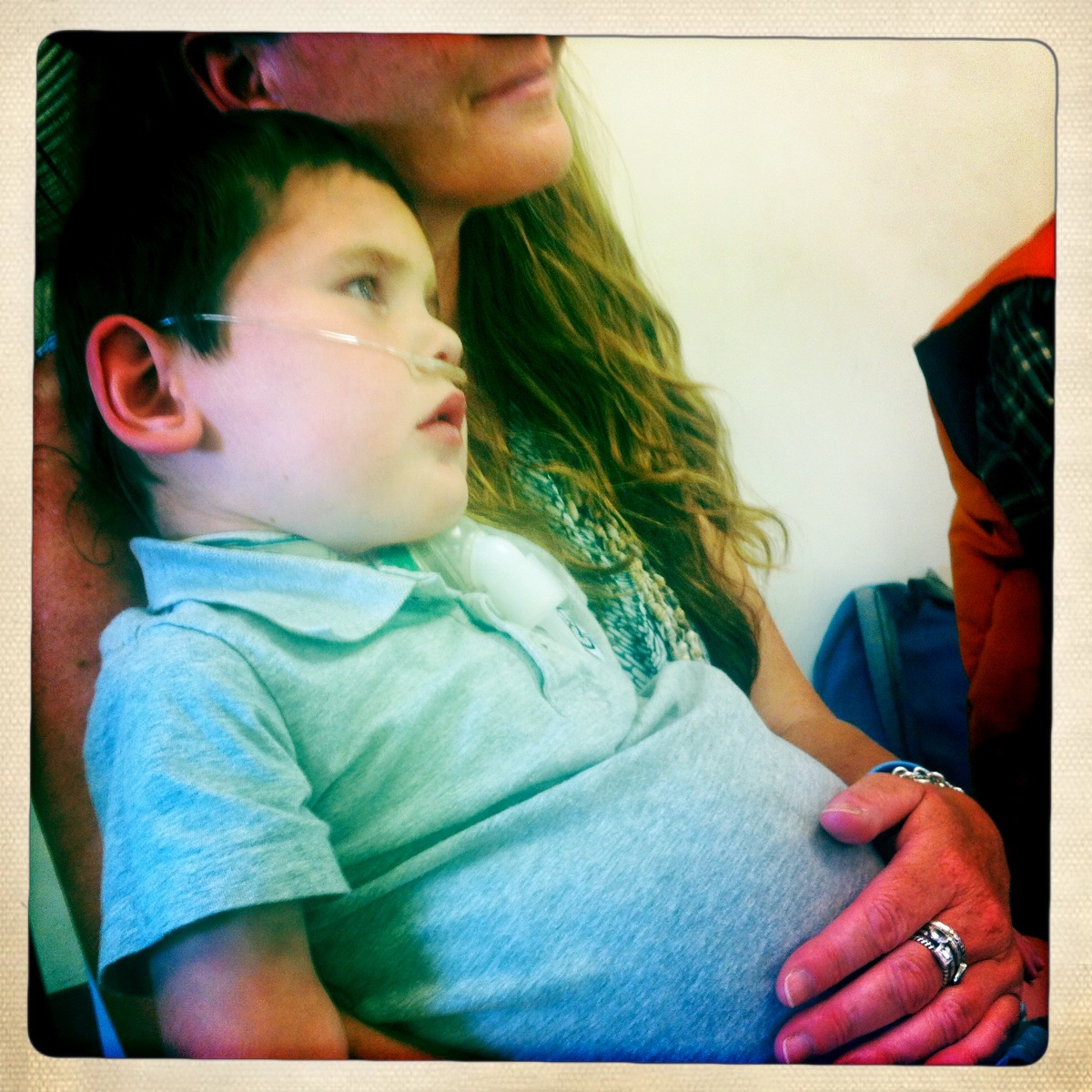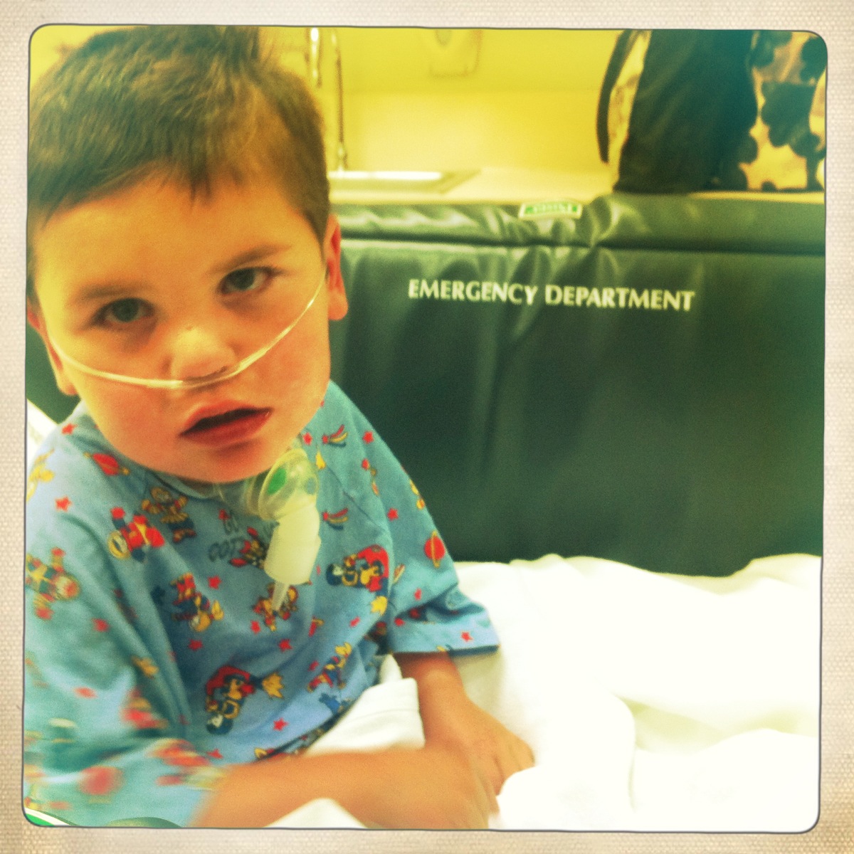 Based on the mild seizure he had last month and the series of seizures he had yesterday, it appears Rudy is no longer responding to his current anti-seizure medication (Keppra). The ER doc consulted with Rudy’s neurologist and sent us home with a new prescription for Trileptal. The ER doc was reassuring and is certain Rudy wasn’t experiencing any new stroke activity (based on the type of seizures Rudy had) but it sure would be nice to know why he’s seizing again all of a sudden. What was concerning about yesterday’s episode was the length of the seizures. Rudy began a mild focal seizure on the school bus on his way home from school and his nurse timed it at about 10 minutes. He continued with the mild seizure at home which traveled from the left side of his mouth, to his tongue and then back to include his mouth. He was pretty wiped and was left with a lazy left side and at one point his whole body turned blue which led to the decision to pack him up and meet Rolf at the ER. Although concerned, we were relieved he fussed at the prospect of putting on a hospital gown and getting onto the bed to be examined…he definitely knew where he was and that he didn’t want to be there! Ha Ha