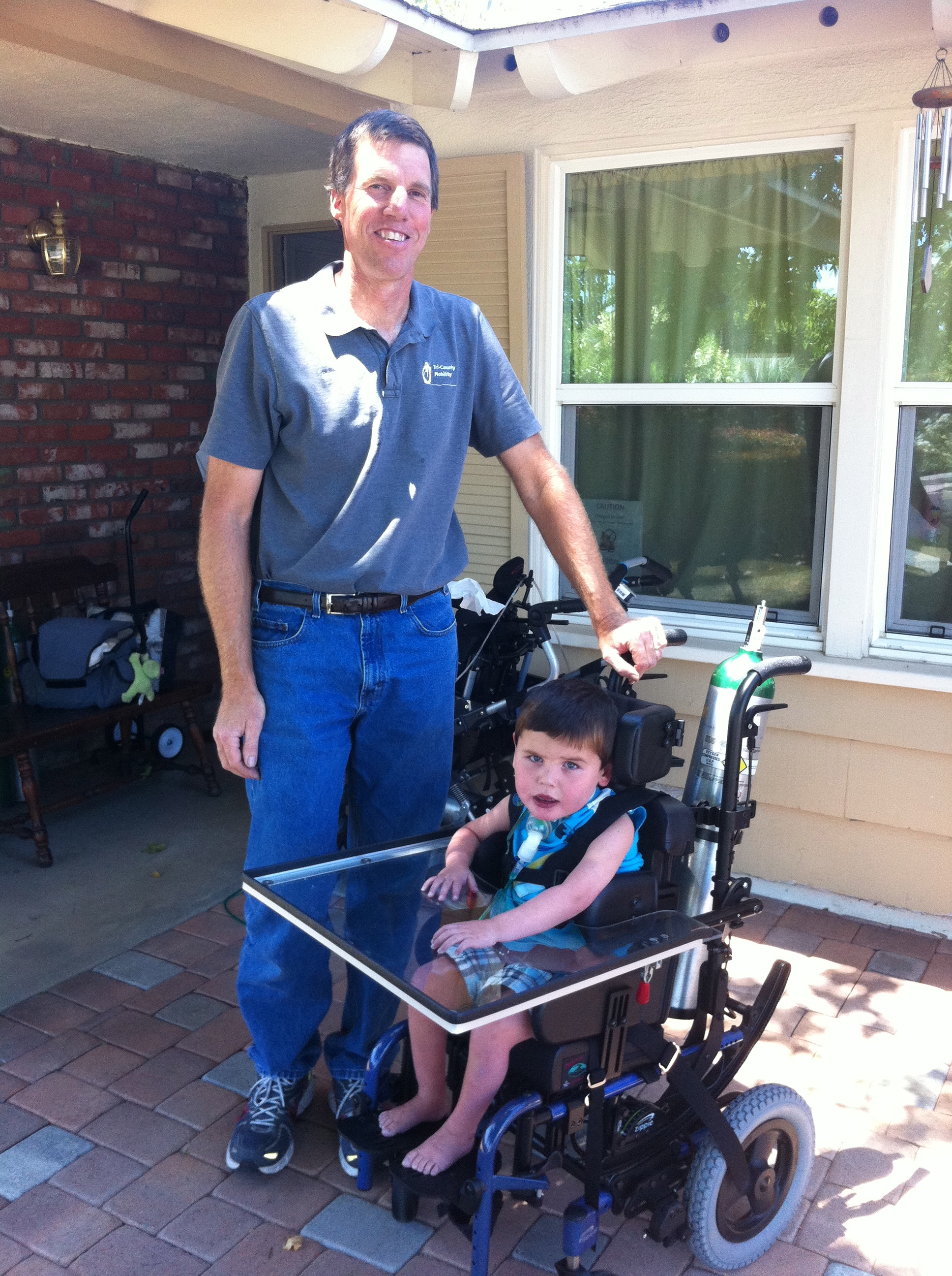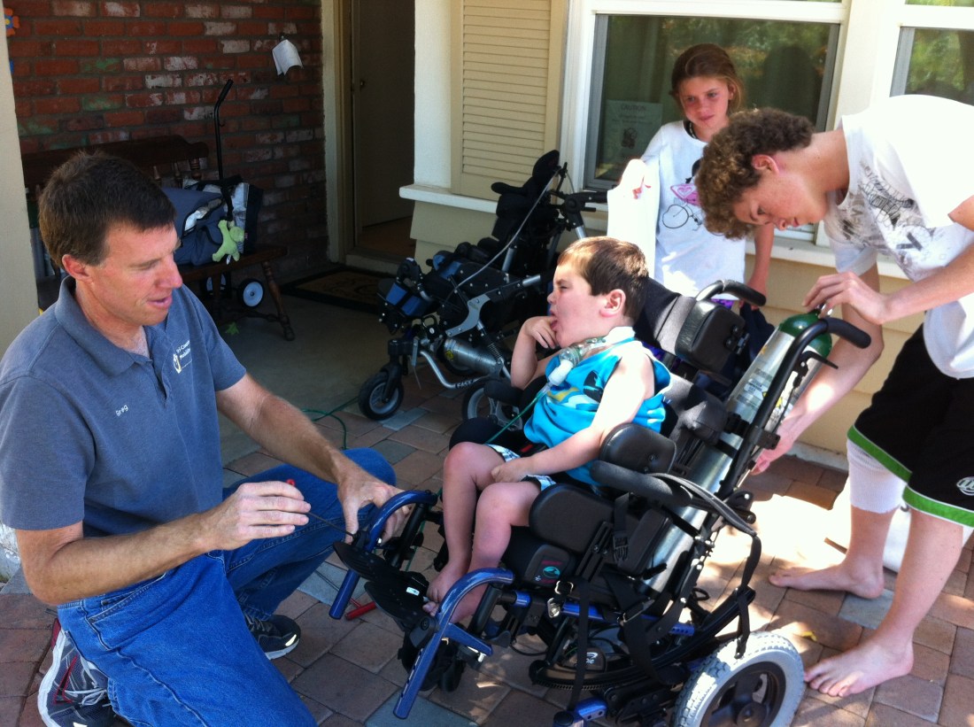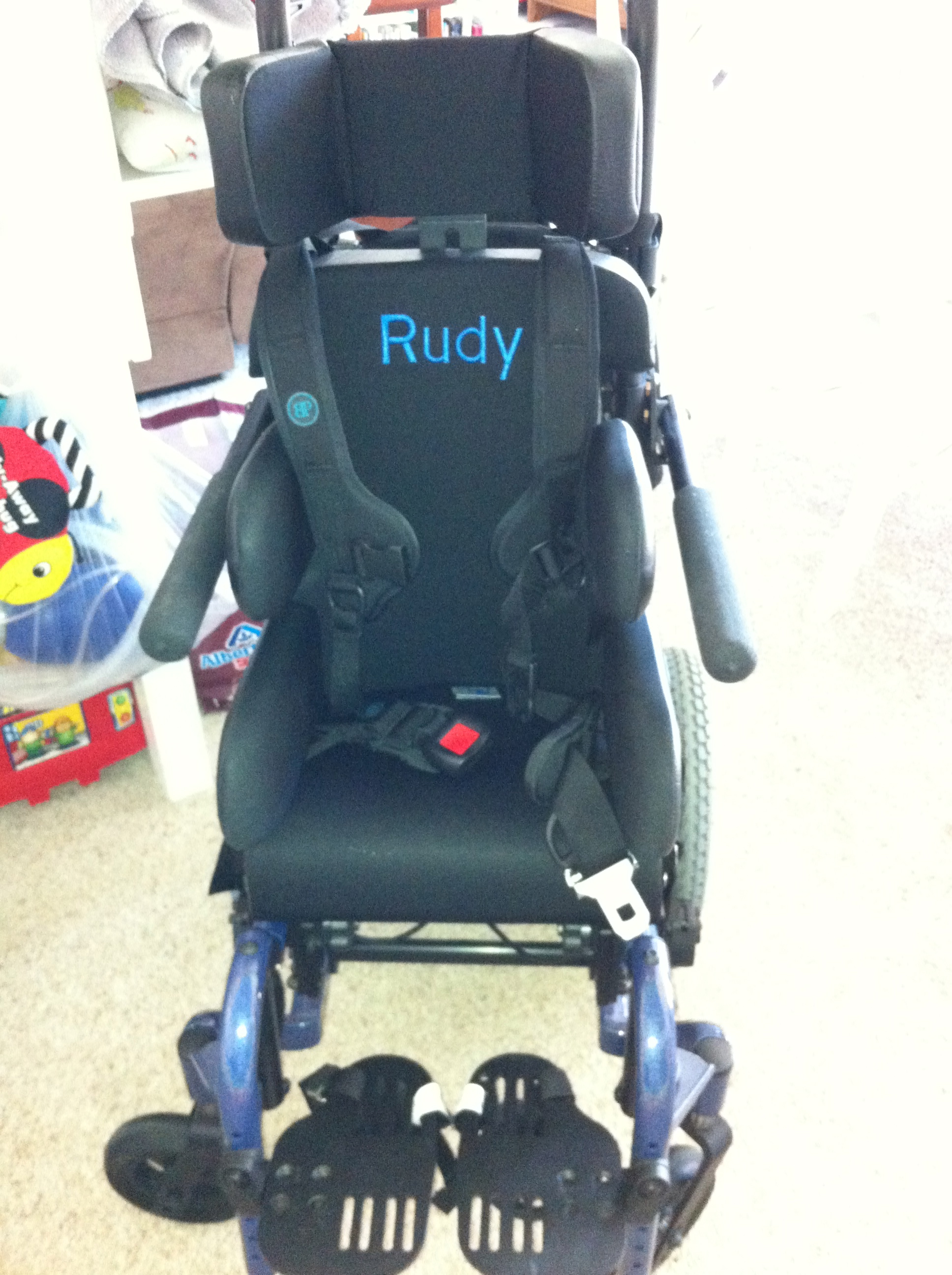 It took several months but Rudy’s new wheelchair arrived today…and after a few adjustments: