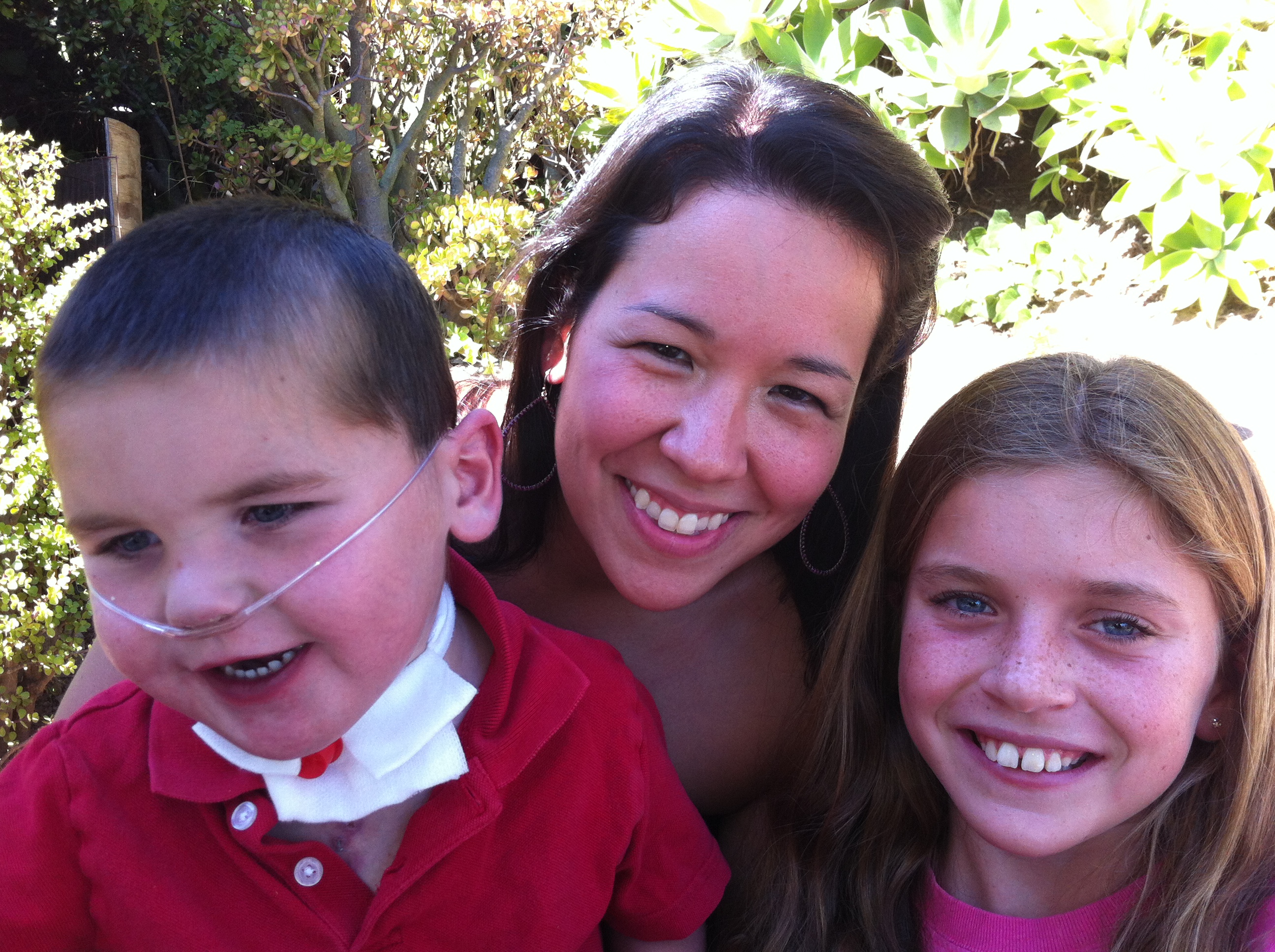 An extra-special bonus to yesterday’s baby shower was getting to see nurse Sara again! Nurse Sara (who drove all the way up from L.A. to attend the shower) cared for Rudy and Logan in the CTICU at UCLA and is very special to both our families. We enjoyed a nice, long visit and Sara was super sweet to give Rudy his g-tube feed for me in the middle of the party (I thought maybe she was missing such a task with it being her day off and all – ha). Sara hadn’t seen Rudy in person for quite some time and she was excited to see how much he has grown and developed – it was so affirming to talk with her!