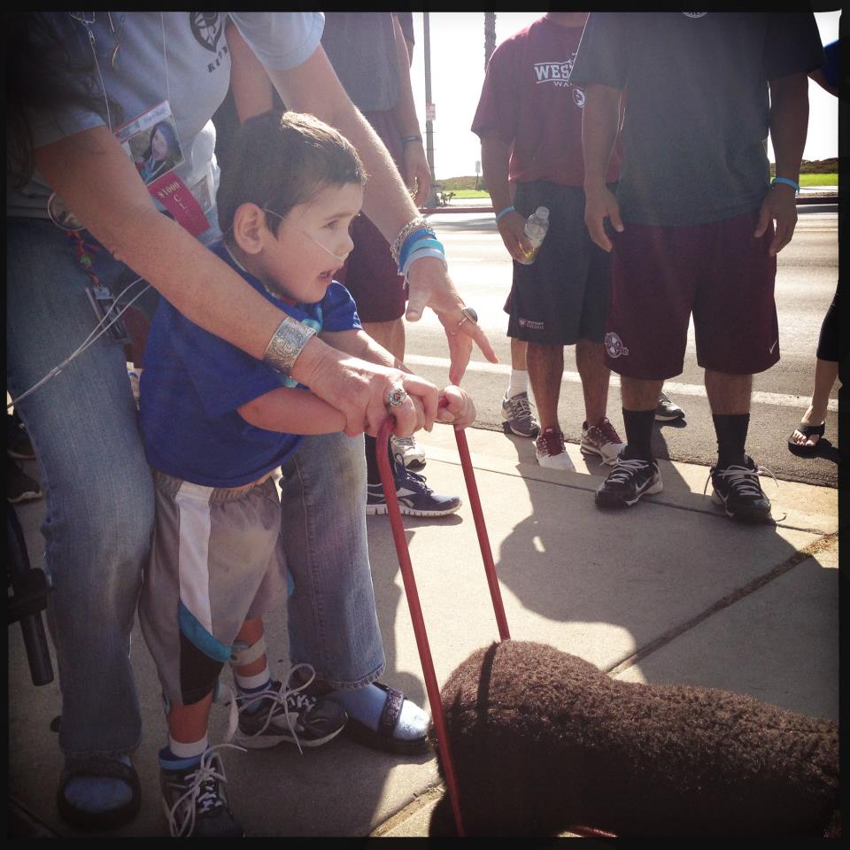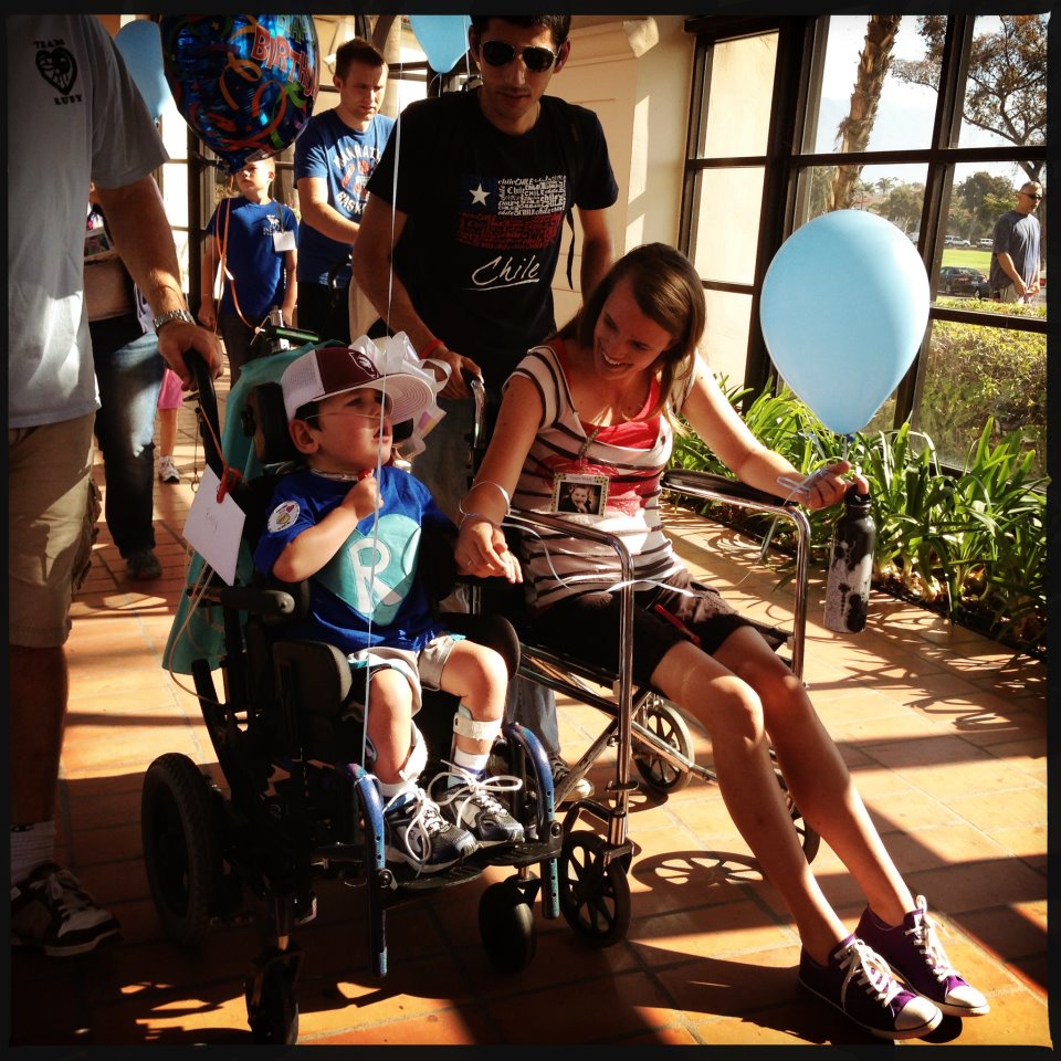 One of the many special highlights of the day was meeting a beautiful young couple – Jeni and Nick Busta. At the age of 25, Jeni is one of the oldest HLHS survivors and I was introduced to her story shortly after Rudy’s diagnosis over 4 years ago. I had heard of Jeni and her husband Nick a few times since Rudy was born but hadn’t had the opportunity to meet them until yesterday. They just happened to be visiting Santa Barbara for the day and came down to the Heart Walk event to cheer on a friend who was participating. Always on the lookout for CHD families, Jeni and Nick wandered over to the Team Rudy tent and I recognized Jeni the minute I saw her!! I can’t tell you what an encouragement it was for me to finally meet her – a true inspiration to countless kids and their families in the heart community. They even ended up walking part of the route with us and staying for Rudy’s birthday celebration! We will definitely be following up with the Bustas for a longer visit – I have soooooo many questions for them both.