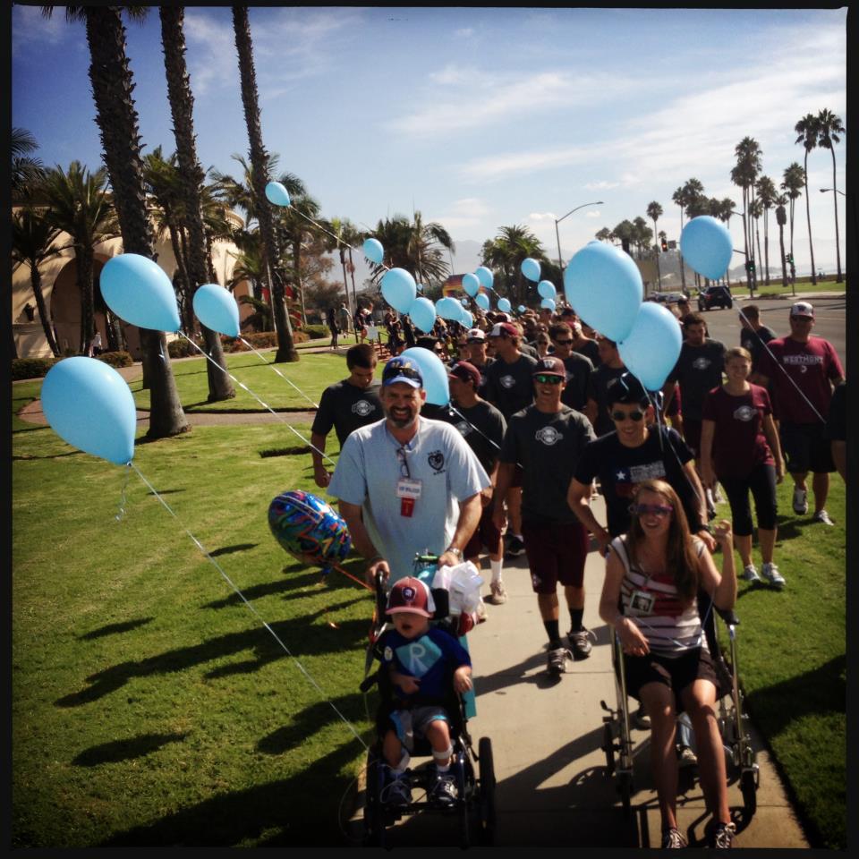 My, oh, my!! Yesterday was so full and so special at the Santa Barbara Heart Walk..it’s hard to absorb it all! We were blessed with another gorgeous day and a picturesque spot right along the beach to set up our Team Rudy tent. We had over 50 friends join us for the walk which was evident to all who saw the sea of Rudy blue balloons scattered throughout the route. We enjoyed sharing the day with friends from church and the SBRM, eight of Rudy’s little buddies, the Westmont College baseball team, nurses, dear friends from L.A., a handful of Livy’s Girl Scout sisters, school friends of Max’s, Wilson and the DPHS drum line, the DPHS cheerleaders and about 600 other Heart Walk participants! 🙂 Team Rudy was recognized as the Top Fundraising Team with a grand total of $8385.00…we are so proud of our team’s remarkable effort.