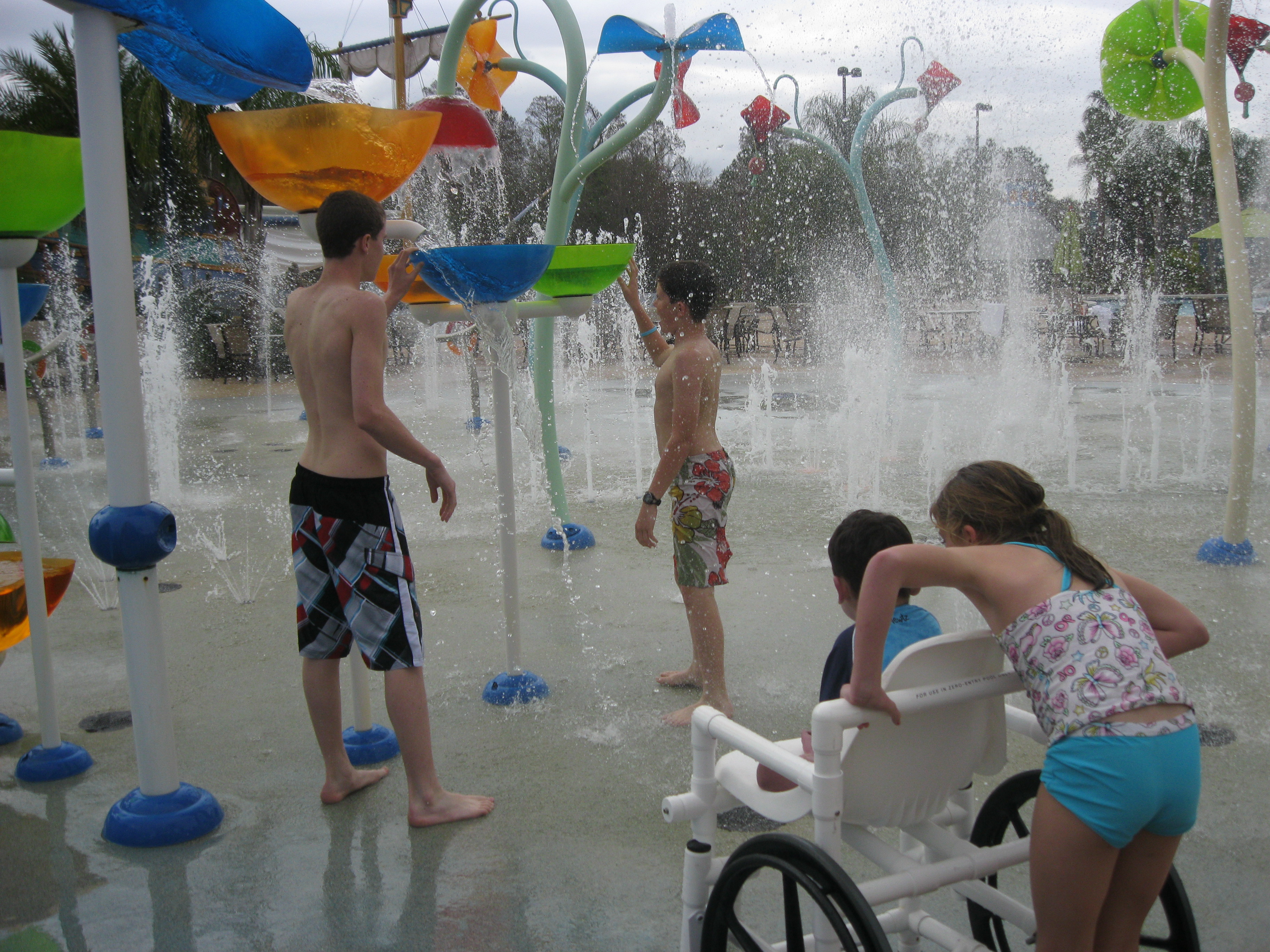 I’m so grateful for the big kids…we promised them plenty of “big kid” fun but also wanted them to keep in mind that this trip was a gift in honor of Rudy and so wanted them to engage in all the activities enthusiastically. They did great! Attitudes remained positive and they always made sure Rudy was included whether that meant accompanying him to a “little kid” activity at Give Kids The World or a theme park, making sure his wheelchair was front and center or picking him up in a crowd so he could see. They just really seemed to share in Rudy’s joy and that blessed us. I was struck by how perfect the timing of this trip was for our family…I’m not sure how much of this trip Rudy will remember but he was certainly old enough to have fun and Wilson was still young enough to have fun. Wilson let go of any need to be a “cool teenager” and allowed himself to be a kid. Max made it a party and played “Pied Piper” in more than a couple of impromptu football games at the pool. Olivia was her sweet nurturing self quick to take Rudy for a walk when he got fussy or help him color at a craft activity. There were many activities where Rolf and I were unintentionally pushed out of the way and watched from the sidelines. Ha Ha 🙂