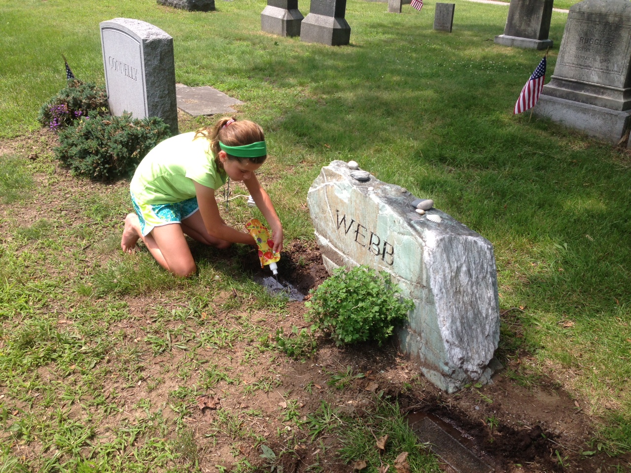 Rolf and the big sibs in Boston all cleaned up and ready to go to a wedding!Rudy’s Aunt Andi and Uncle John!The boys enjoying all things Boston!!!! 🙂Olivia paying her respects to cousins Seamus and Faoileann laid to rest outside Boston.Some summer fun…Kool-aid hair dye!! Olivia and her friend Cady wanted to dye Rudy’s hair!!! I said no. Ha HaRudy got his new, “hand-me-down” walker on Monday…his cherry red hot rod has already made a few rounds around the cul-de-sac!!!Rudy making all kinds of friends at the SBRM BBQ…