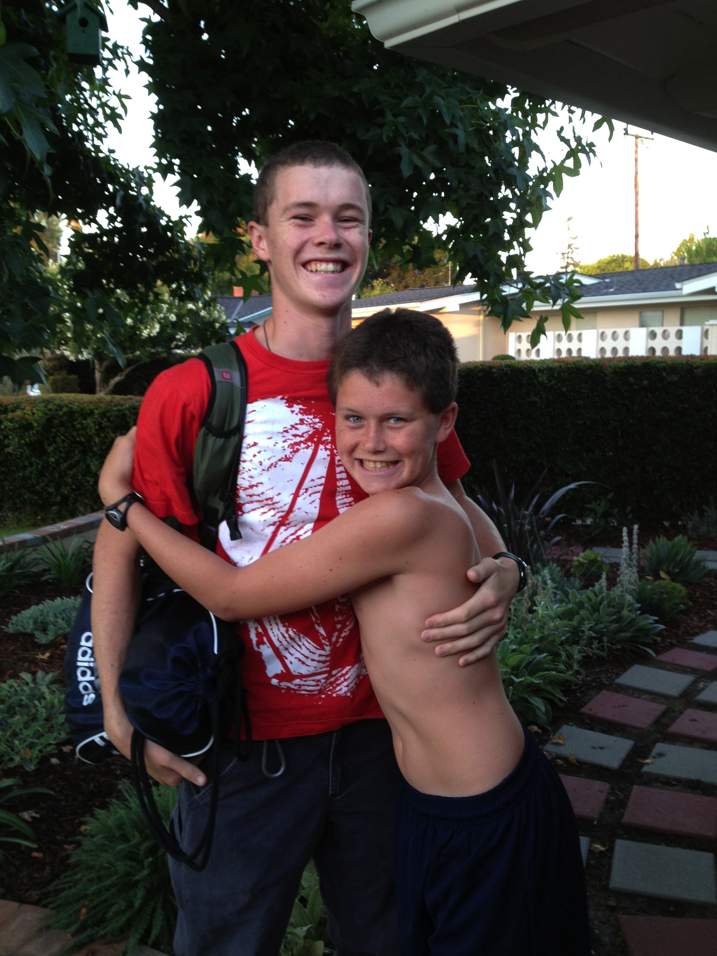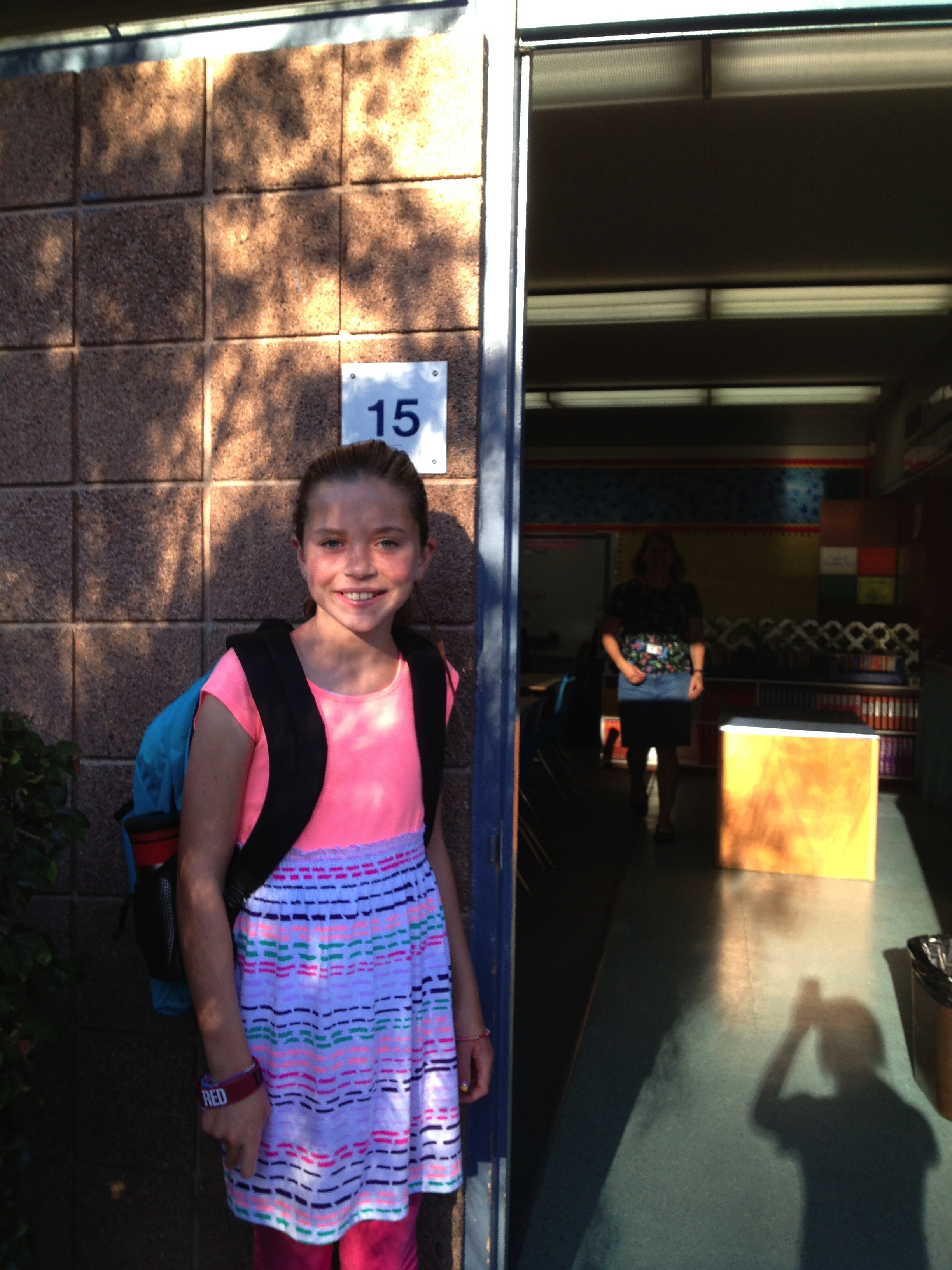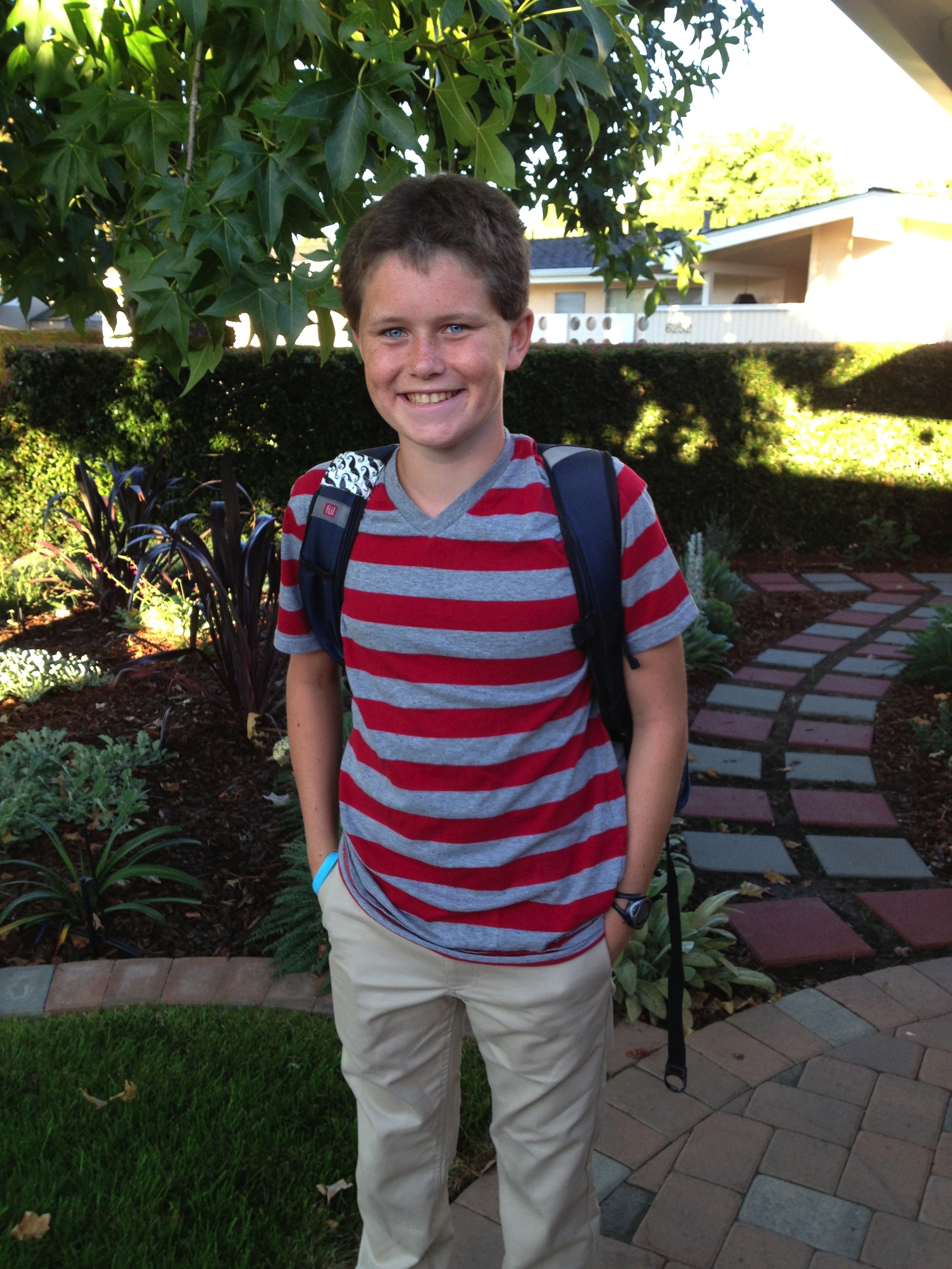 It’s official…sadly, summer is over but the big sibs were all smiles when they headed off to school this morning and, even more importantly, were all smiles when they came home this afternoon. Rudy and I visited his classroom today and we really enjoyed meeting his new teachers and school nurse. He will start his first day bright and early tomorrow morning and because he’s back in Goleta, he won’t have a long bus ride anymore…he’ll be just a couple of minutes away from home! Yay! His annual IEP meeting won’t be until late September so any decision to pursue a blended schedule that would include time at La Patera (our neighborhood school) won’t be considered until then. We’ll have to wait and see. 🙂