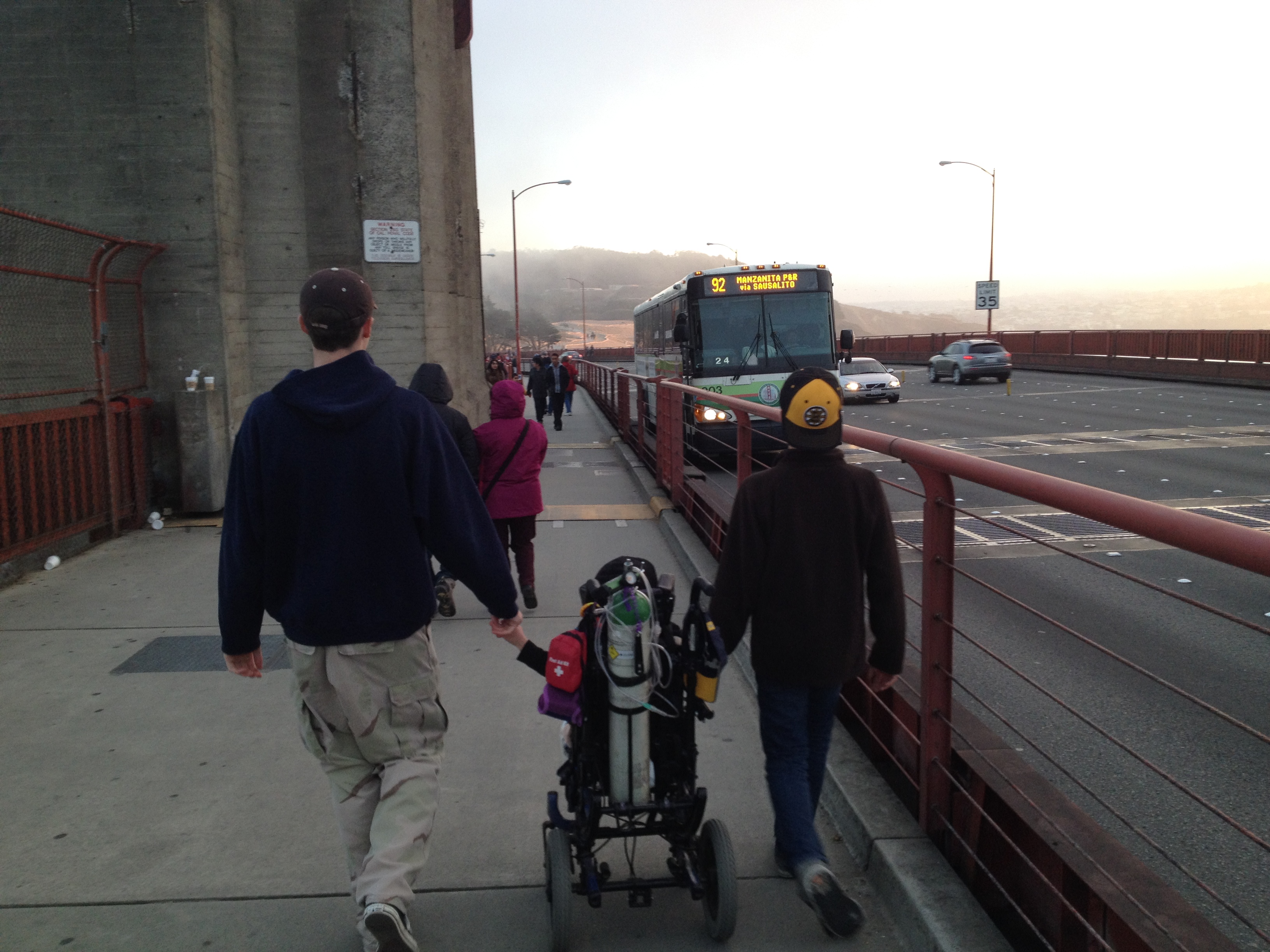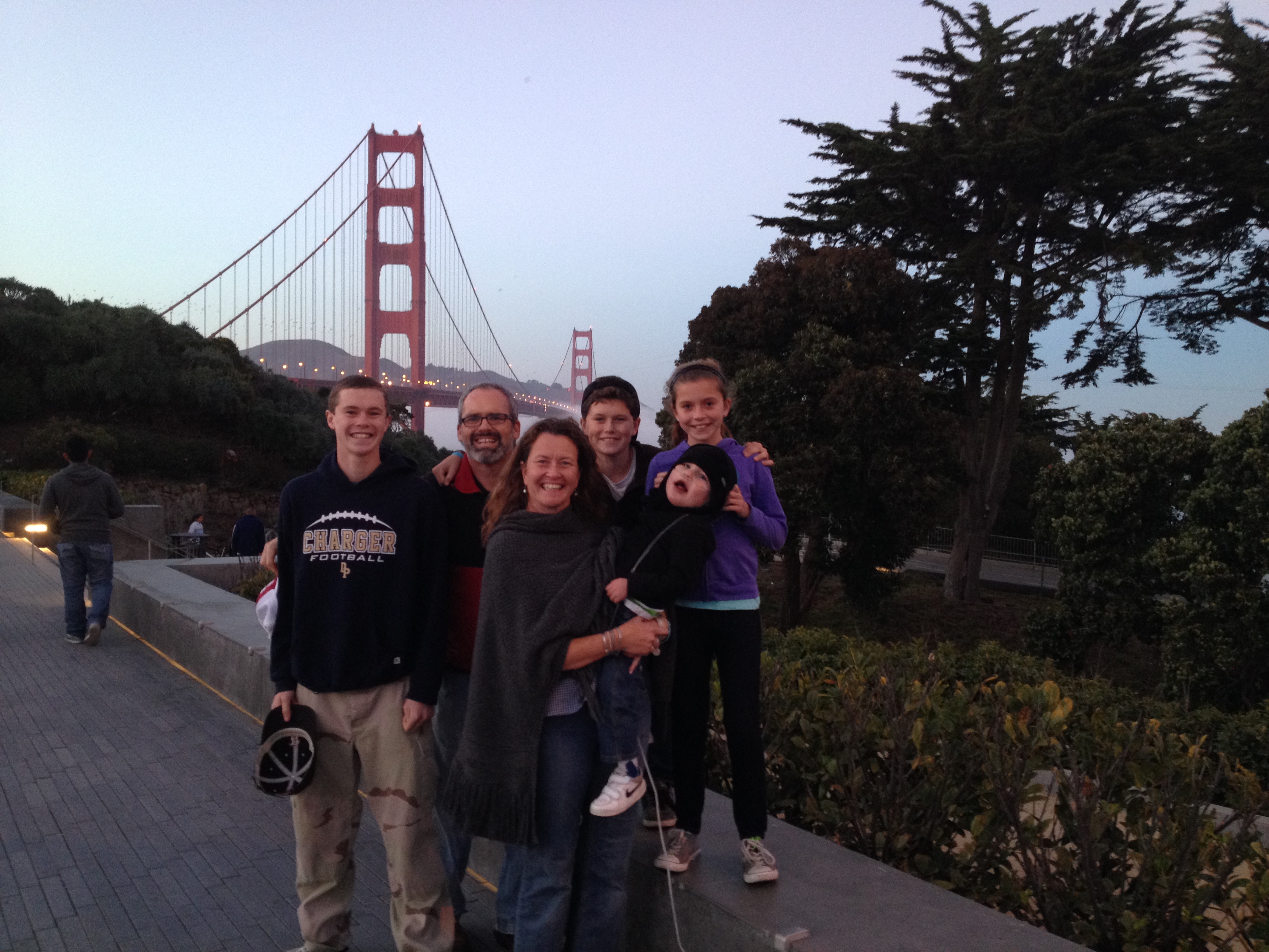A quick trip to Chinatown in SF…Taking in all the holiday hoopla at Macy’sPizza on a crowded curb…yum!No trip to SF is complete without a visit to our bridge…and a little walk down memory lane!Rolf proposed on the top of THIS Golden Gate Bridge tower…The door of destiny!