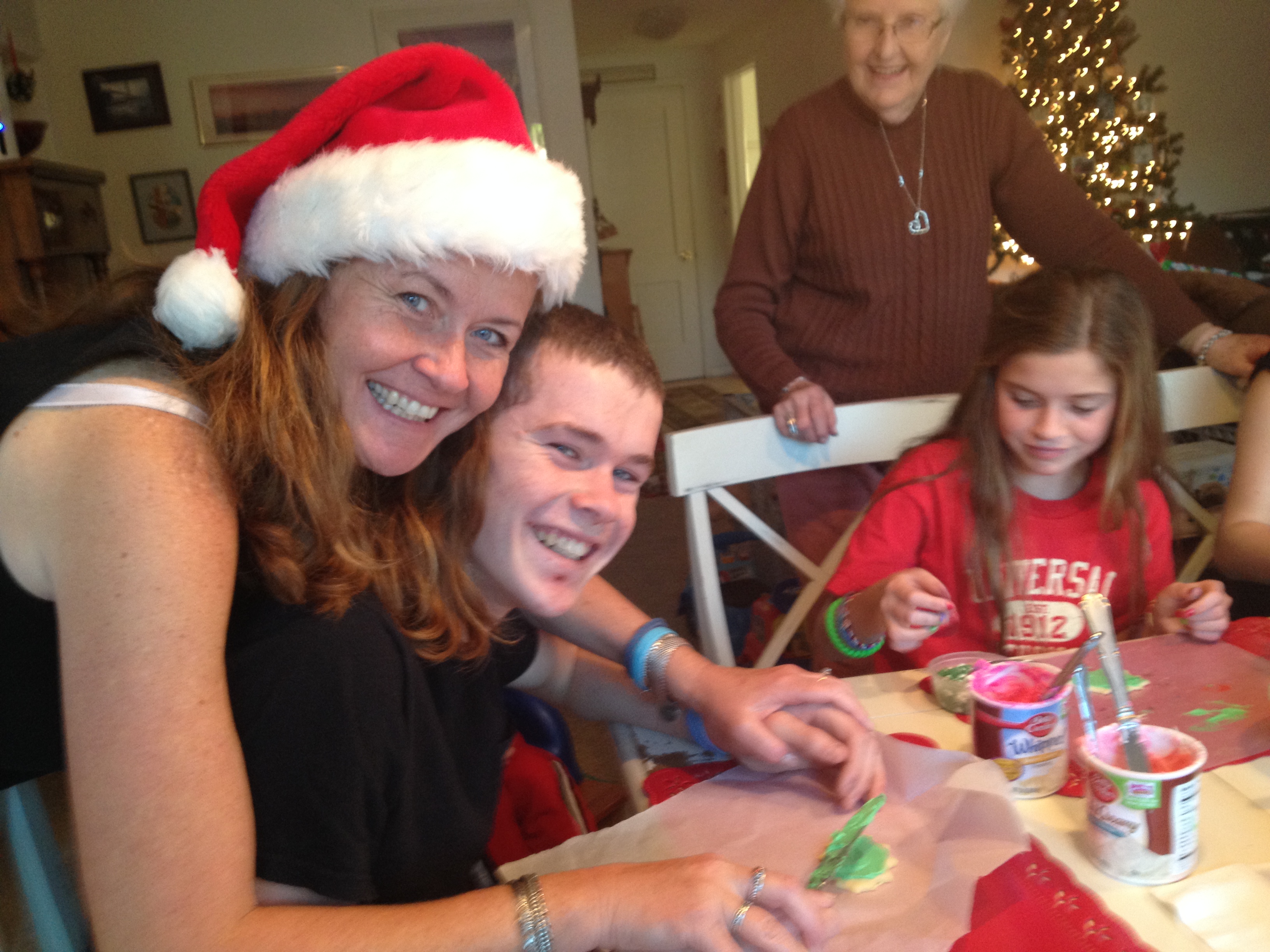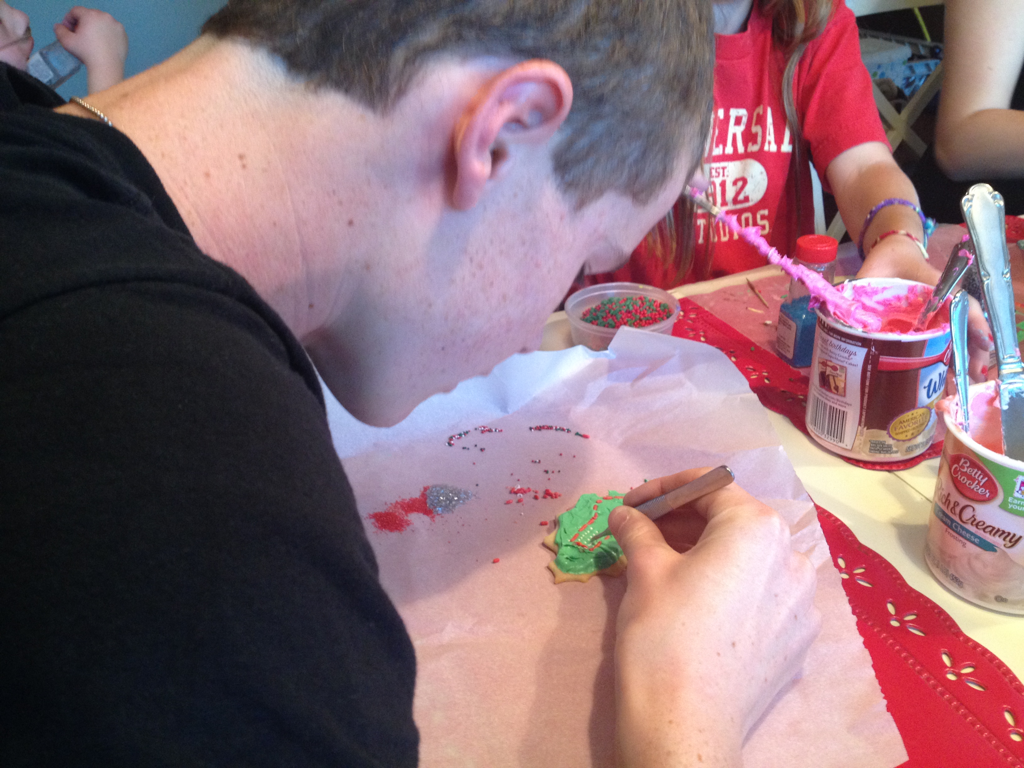 Last minute Christmas preparation included cookie decorating…Wilson spent 20 minutes on one cookie!!His technique even involved tweezers…Punisher Christmas Cookie??????Christmas morning 2013!
