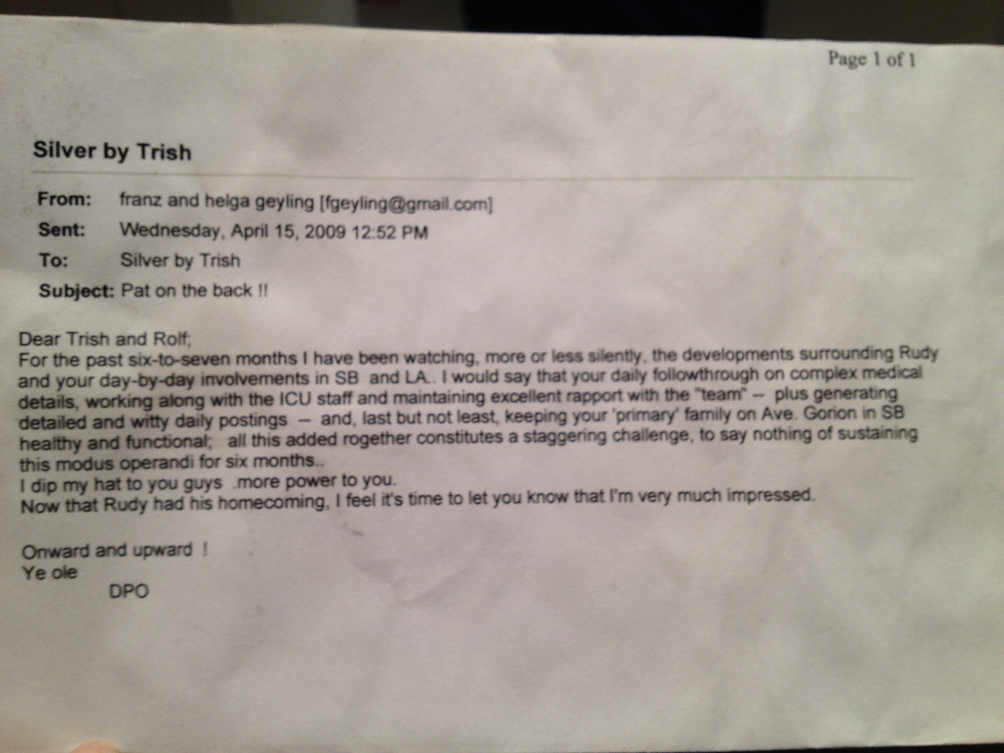 As driven and focused as he was in his career, I was grateful for the way Dad softened with age. While it was challenging to watch, he maintained a sense of pleasant dignity while his abilities were progressively diminished by Parkinsons. He did not get embittered or angry. He became more able to freely express affection and affirmation than at earlier points in his life. While I wish my kids would have seen the vigorous man who cleared his own wooded homesite with a chainsaw and poured a huge concrete patio around it with cement he mixed and hauled by himself, I’m grateful that they saw his sweetness, contentedness and care.
