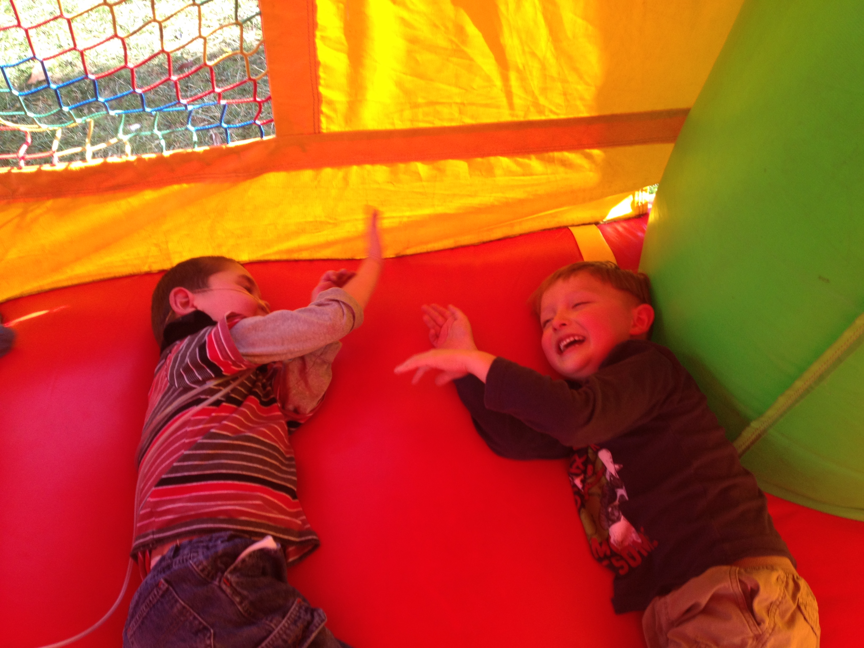 Spring is definitely in full swing around here…Wilson’s birthday is now a distant memory, the sorrow of Holy Week is fading, the great joy of Easter is still fresh in our hearts and Mother’s Day is just around the corner! We had a fun, full Easter celebration yesterday and hope you did too. 🙂 In addition to all the familiar events the spring season holds for our family every year, Rudy was invited by one of his La Patera classmates to a fun birthday party this past weekend…a party that included a bounce house…a new favorite to add to Rudy’s top 10 list!! Ha Ha He had a blast and was clearly pleased to hang out with school friends outside of school. It was fun watching him have so much fun. 🙂