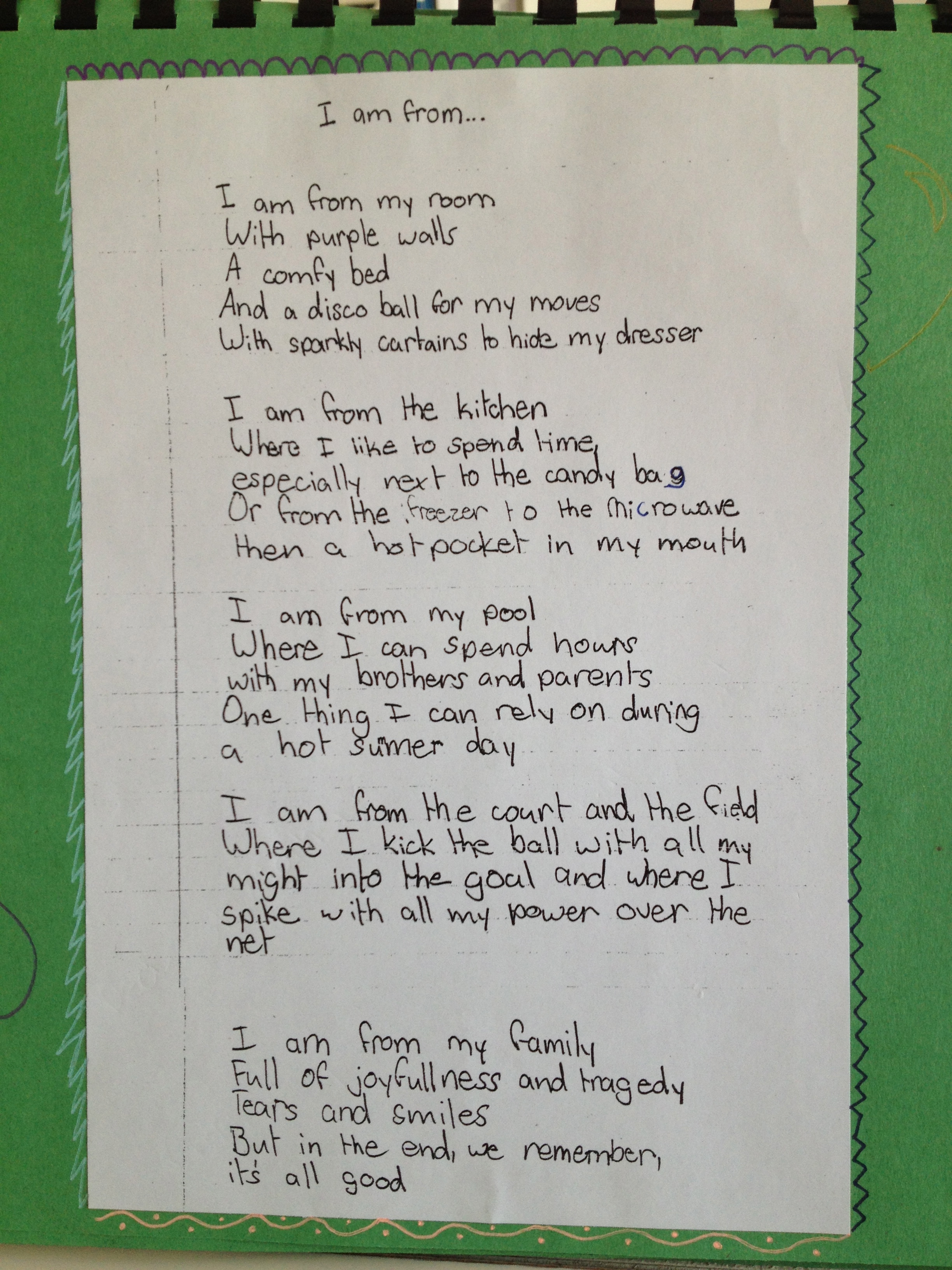 I got a sweet glimpse into Olivia’s mind through poems she wrote this year in her poem journal for school…my favorites are her preposition poem which describes the day Rudy came home from the hospital and the last stanza of her “I am from…” poem. A great reminder that “it’s all good”