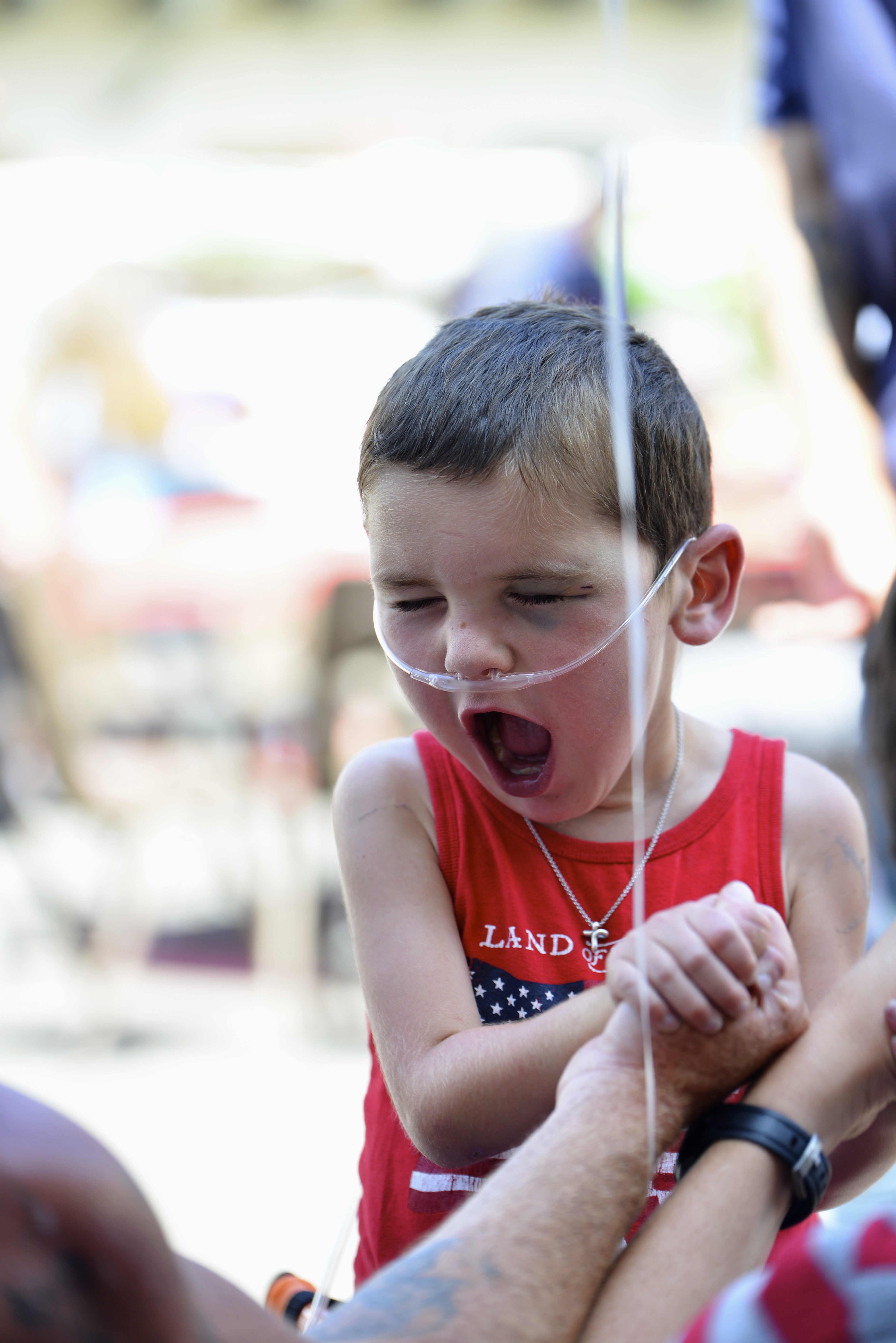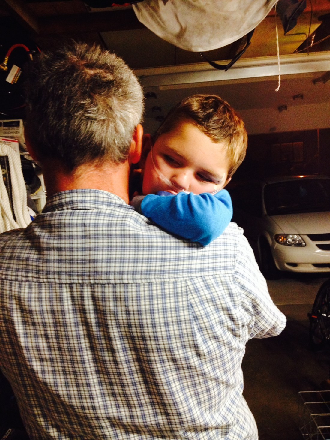 Dr. Dan was very pleased, but also wanted to get back to Rudy as he was very concerned about the femoral artery. He said they would watch that very carefully overnight as a bleed there would be a major issue. As you can already tell, the time in recovery went really smoothly and Rudy was peaceful and content to lie still like he was supposed to for the rest of the day and slept through the night. Among the more significant developments was that his 02 sats were consistently in the high 80s (compared to the low to mid 70s where they’ve been of late. Since this was his first post-trache cath, it was also the first time he was intubated, so he had a scratchy throat and barely spoke above a whisper–until the moment he saw his big sibs at home had him squealing with his trademark joy.