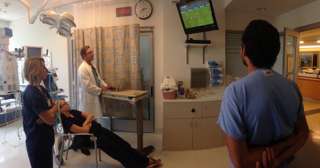 Rudy cruised through the PACU and we made it to our room after just about three hours. Dr. Dan came and got me between cases as he felt it was important to support the USA and watch the World Cup.