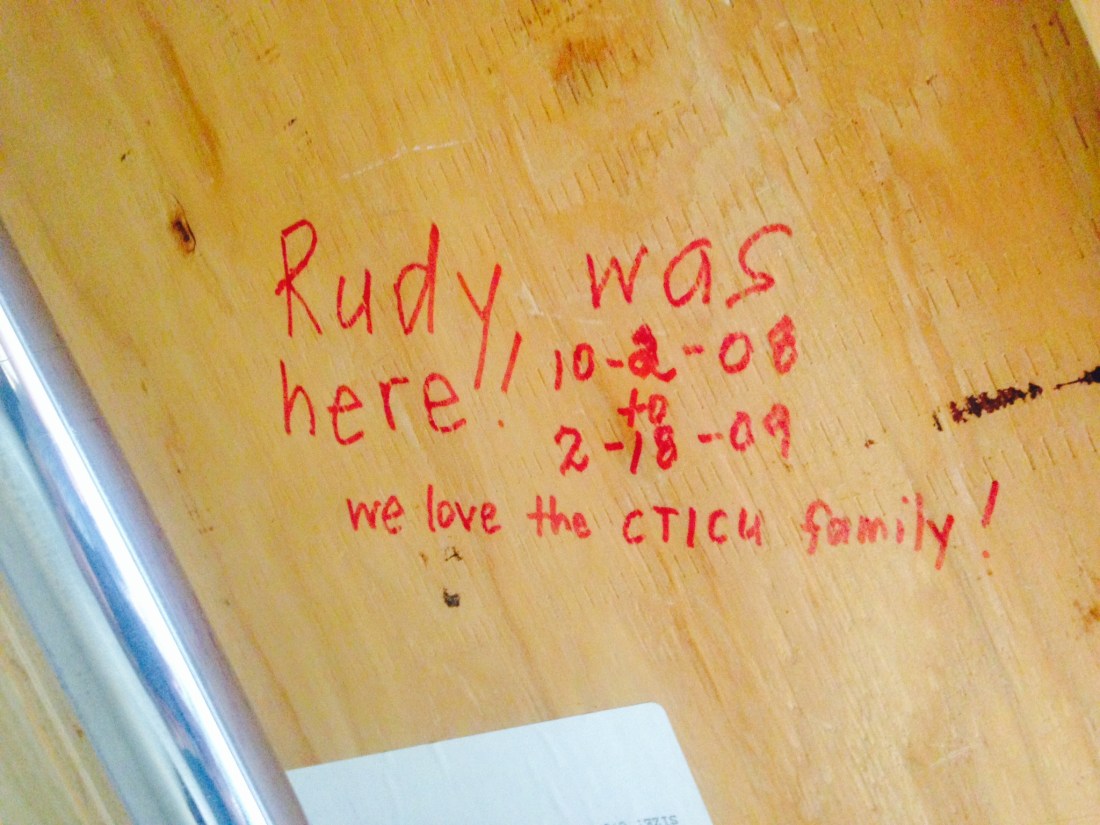 Just a few minutes later we got paged again and Dr. Dan was on the phone rattling through the positives: heart function looks better than everyone feared (perhaps the reason we suspect they rushed us in), they were able to open up the Sano to its original size, and now they had just finished a consult with Rudy’s surgeon and did feel that they should attempt to stent the aorta.