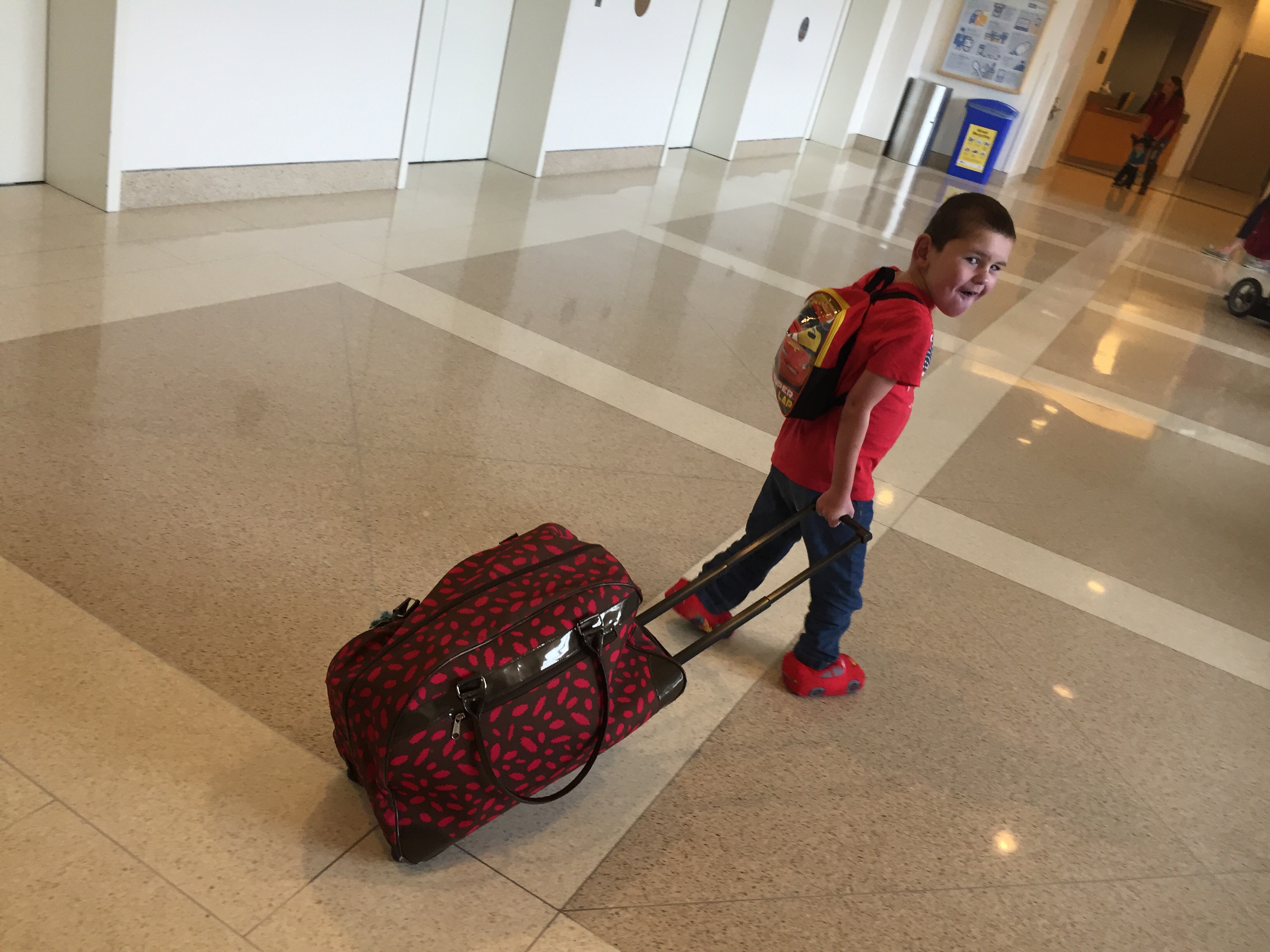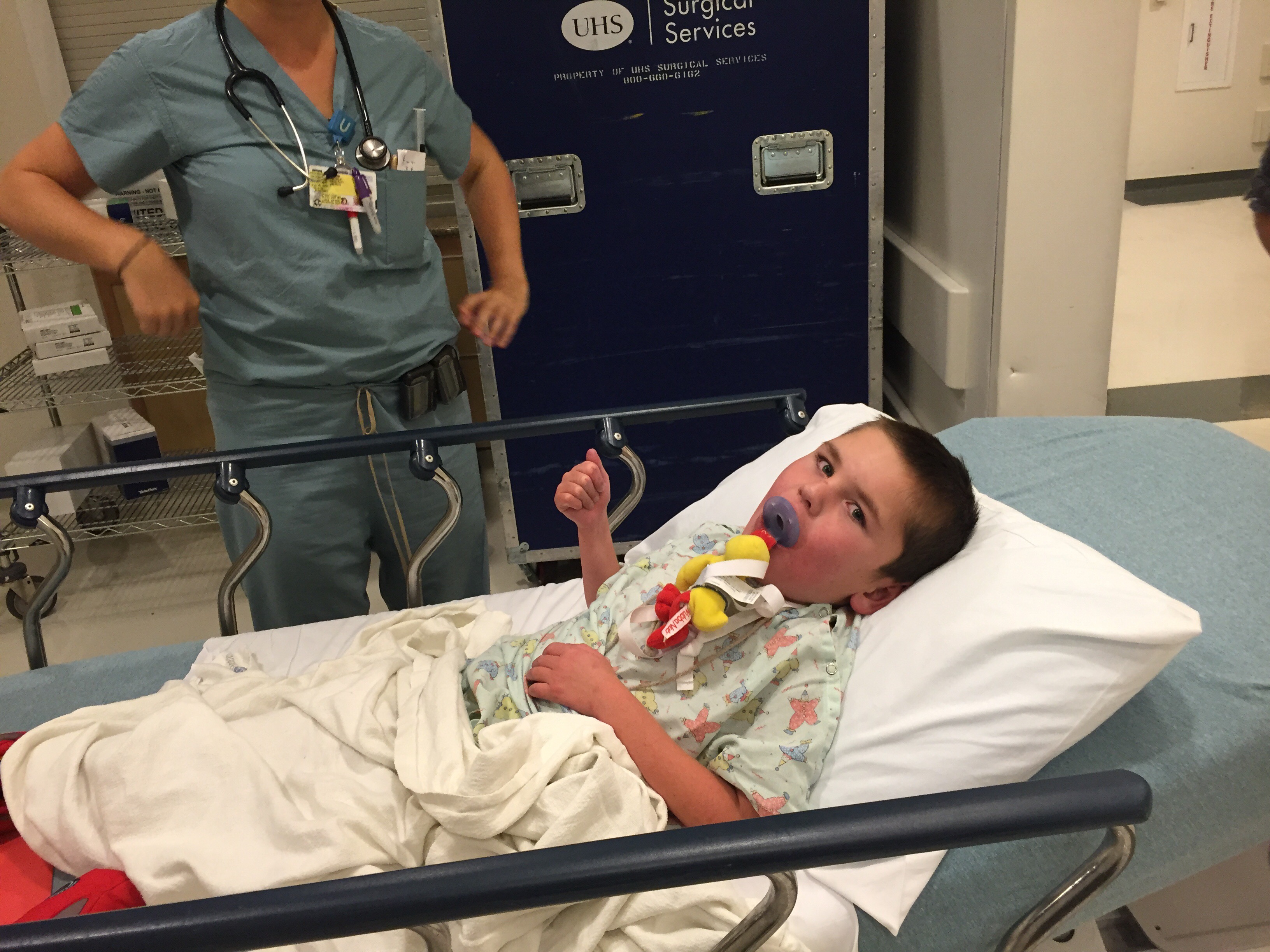 Demonstrating his ability to get excited about anything, Rudy asked repeatedly if he could bring wear his McQueen backpack and slippers to the hospital (and wore them for hours last evening after packing his toys). Walked into the hospital like a boss.