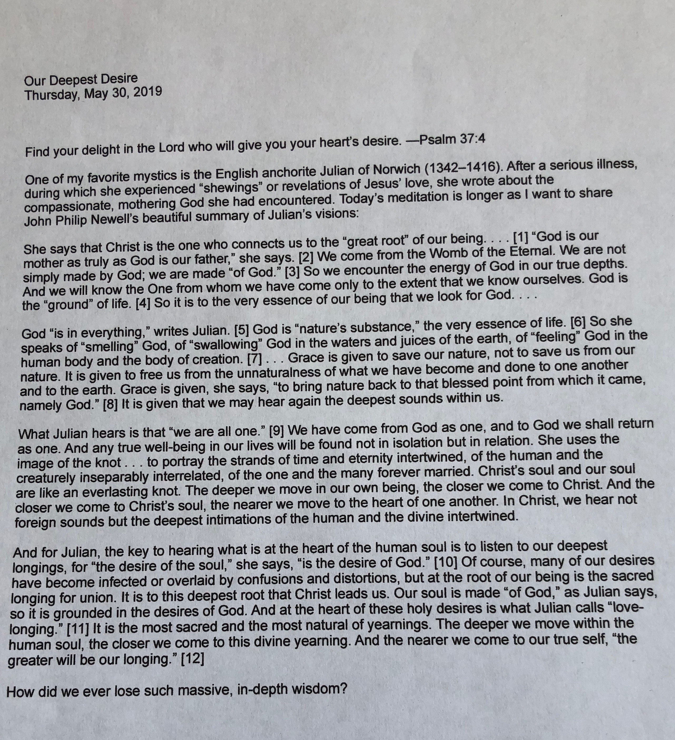 Rolf forwarded me Richard Rohr’s daily meditation about my favorite – Julian of Norwich! Yay: